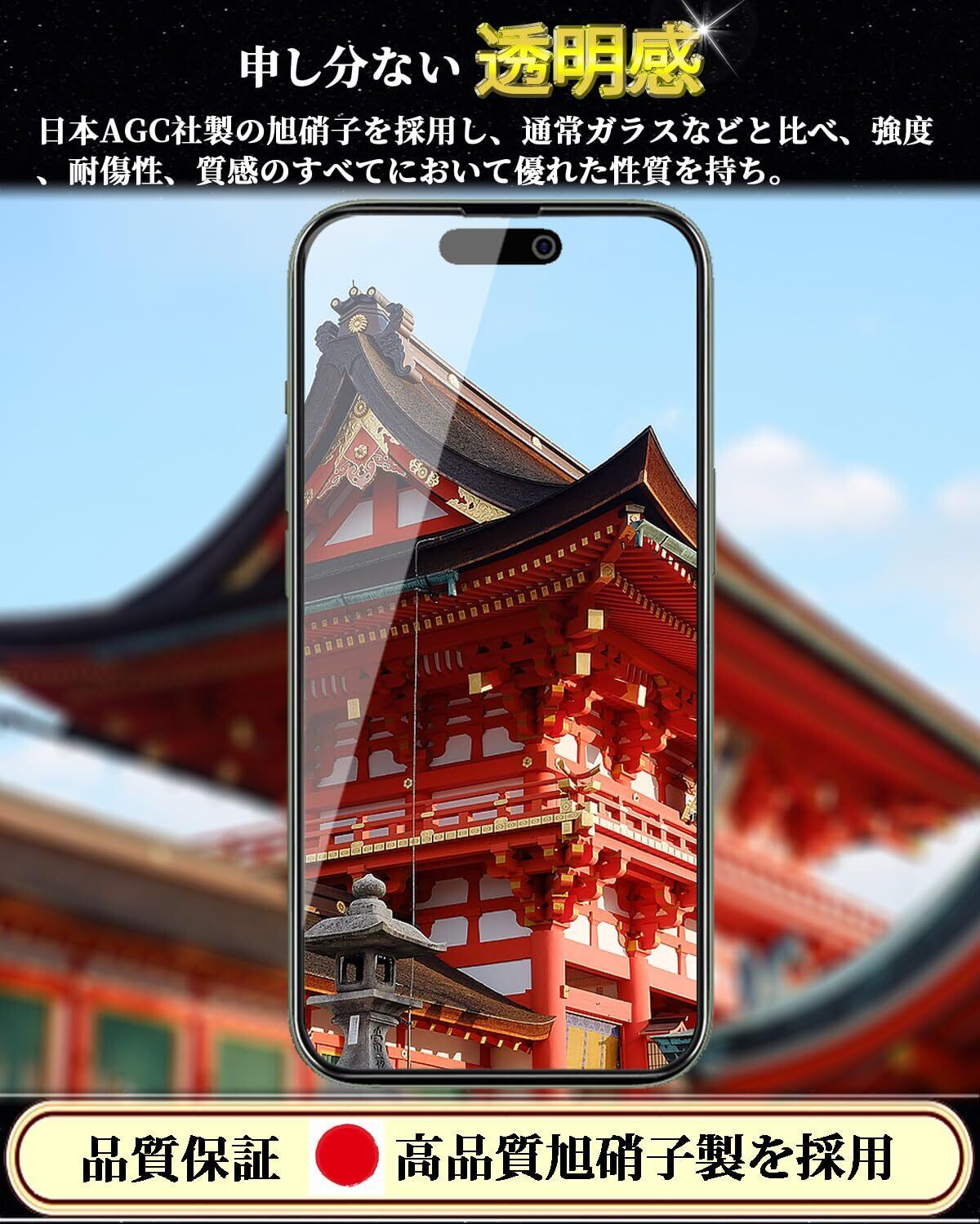 【旭硝子素材採用!対応機種】iPhone 15Plus 覗き見防止ガラスフィルム。日本製最上級旭硝子ガラスを使用しております、業界最高レベルの9H硬度、ハードコーティング技術により外部からの衝撃をフィルムが吸収し、ナイフや鍵などの尖ったものでも簡単には傷がつかなく、最高程度で画面を守ります。