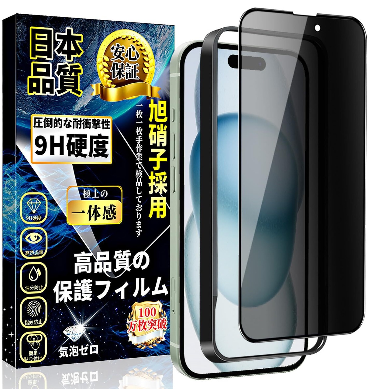 【人気商品】対応 iPhone 15 Plus ガラスフィルム 覗き見防止 iPhone15 Plus 全面保護 フィルム のぞき見防止 旭硝子素材製【ガイド枠付き・1枚入】 硬度9H 指紋防止 自動吸着 気泡防止アイフォン15 Plus 強化ガラス 保護 フィルム 6.7インチ | ニコニコSHOP