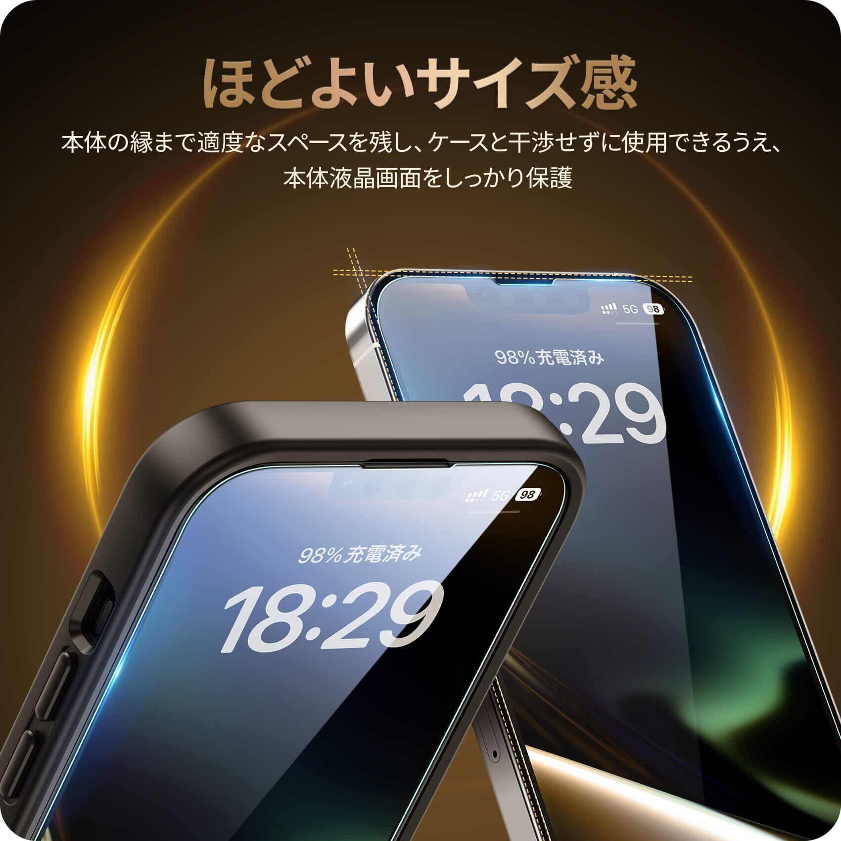 【ケース併用】 iPhone本体の縁まで適度なスペースを残すデザインとなっており、フィルムの剥がれや浮き上がりを防止し、スマホケースと干渉せずに快適に使えます。