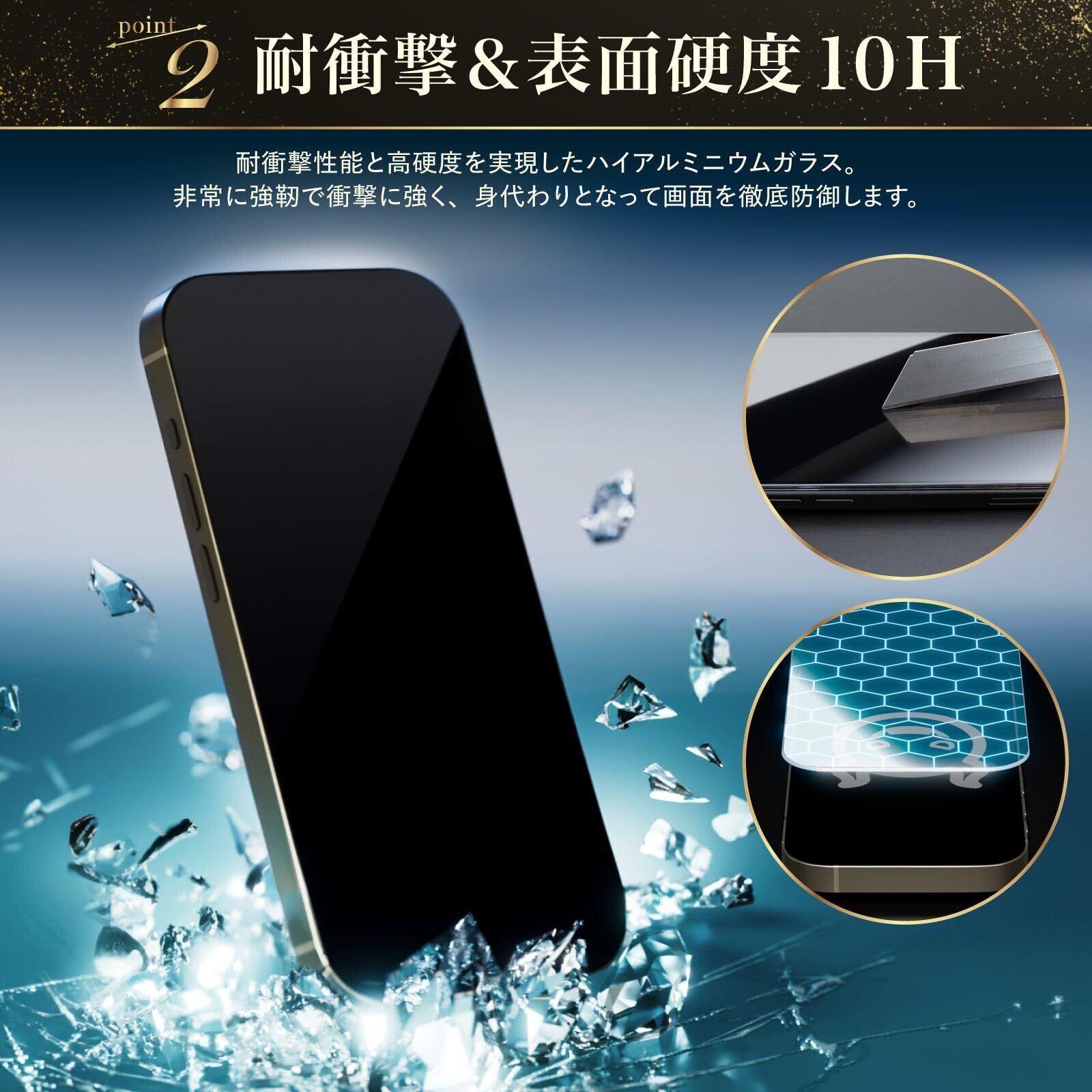 【ブルーライトカット&アンチグレア】ブルーライトを約50%カット。マットな質感で指紋の付着が目立ちにくく、光の反射や映り込みを防ぎます。アンチグレア(非光沢 / ノングレア)タイプ特有のサラサラとした指滑りでゲームにも最適です。※アンチグレアの仕様で白みがかって見えます。 【傷・割れ防止】強靭なハイアルミニウムガラス素材を採用。二度の強化加工で高硬度と柔軟性を実現しました。一般的なソーダライムガラスと比べ強度は約6倍、表面硬度10Hでスマホ画面を傷や割れから守ります。