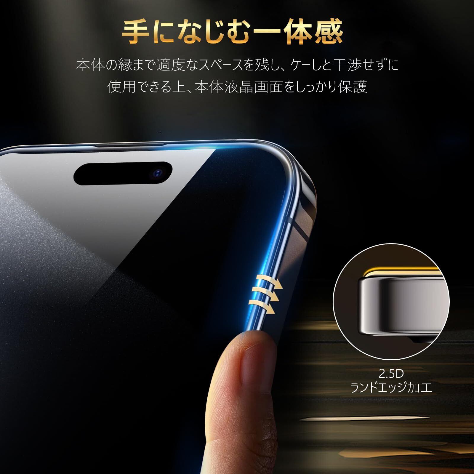 【指紋防止・高感度タッチ】このiphone 15 pro max フィルムは、タッチ操作に遅延を感じることなく即反応します。高い撥油性・撥水性を持つ操作感が心地よいサラサラな指通り。画面に指紋を残さないので、スマホゲームとの相性もバッチリです。さらに、フィルムのFaceID部分は、顔認証の妨げにならないよう、底面に円形の切り込みを入れ、ホコリが溜まりにくい設計になっています。
