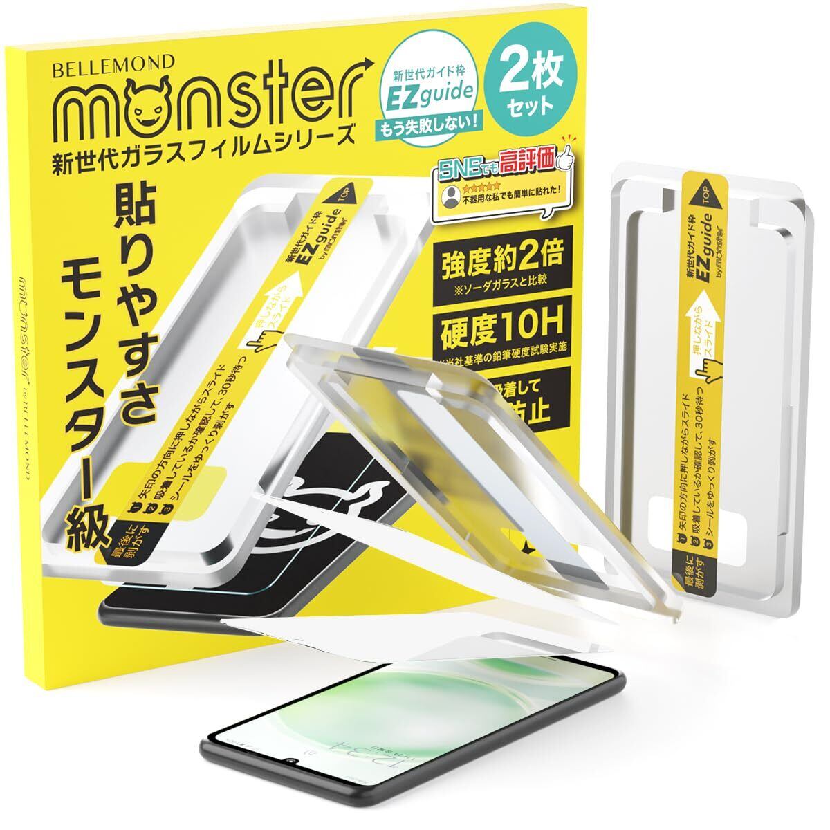 モンスターフィルム AQUOS sense8 用 | 強化 ガラスフィルム 透明 クリア 保護 フィルム 硬度10H | アクオス センス8 SH-54D SHG11 SHG11 対応 ベルモンド ガイド枠付き 2枚 セット B1077