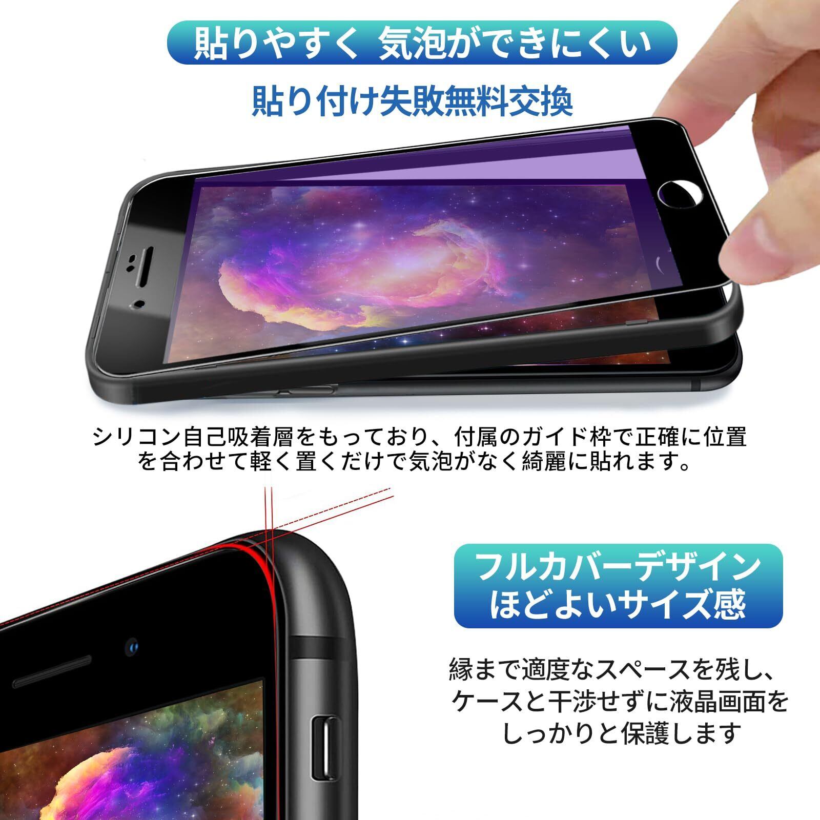 【ガイド枠付き】iphone se2 se3 ブルーライト ガラスフィルム iphonese第二世代/第三世代 保護フィルム ブルーライトカット 2枚セット アイフォン se3 強化ガラスフィルム あいふおん SE2020 SE2022 画面保護シート 目の疲れ軽減/秒で貼り付け/浮きなし/指紋軽減 いphone se2フィルム