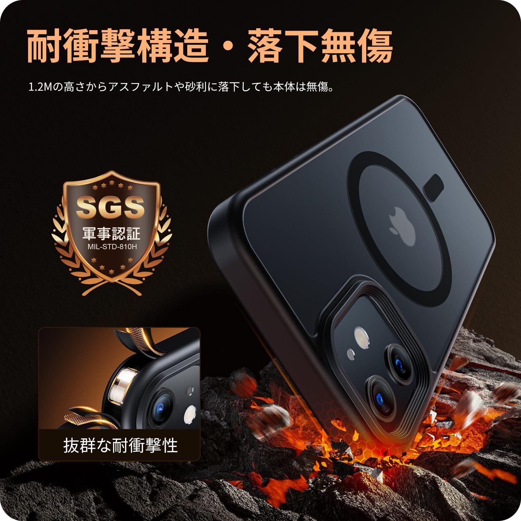 【数量限定】NIMASO ケース MagSafe 対応 iPhone12pro/12 ケース マグネット搭載 マグセーフ対応 カバー 滑り止め マット仕上げ 全面保護 耐衝撃 米軍MIL規格取得 ワイヤレス充電 ストラップホール付き アイフォン12プロ/12対応(6.1インチ) スマホケース ブラック (黒羽シリーズ)NSC24C1132 | ニコニコSHOP
