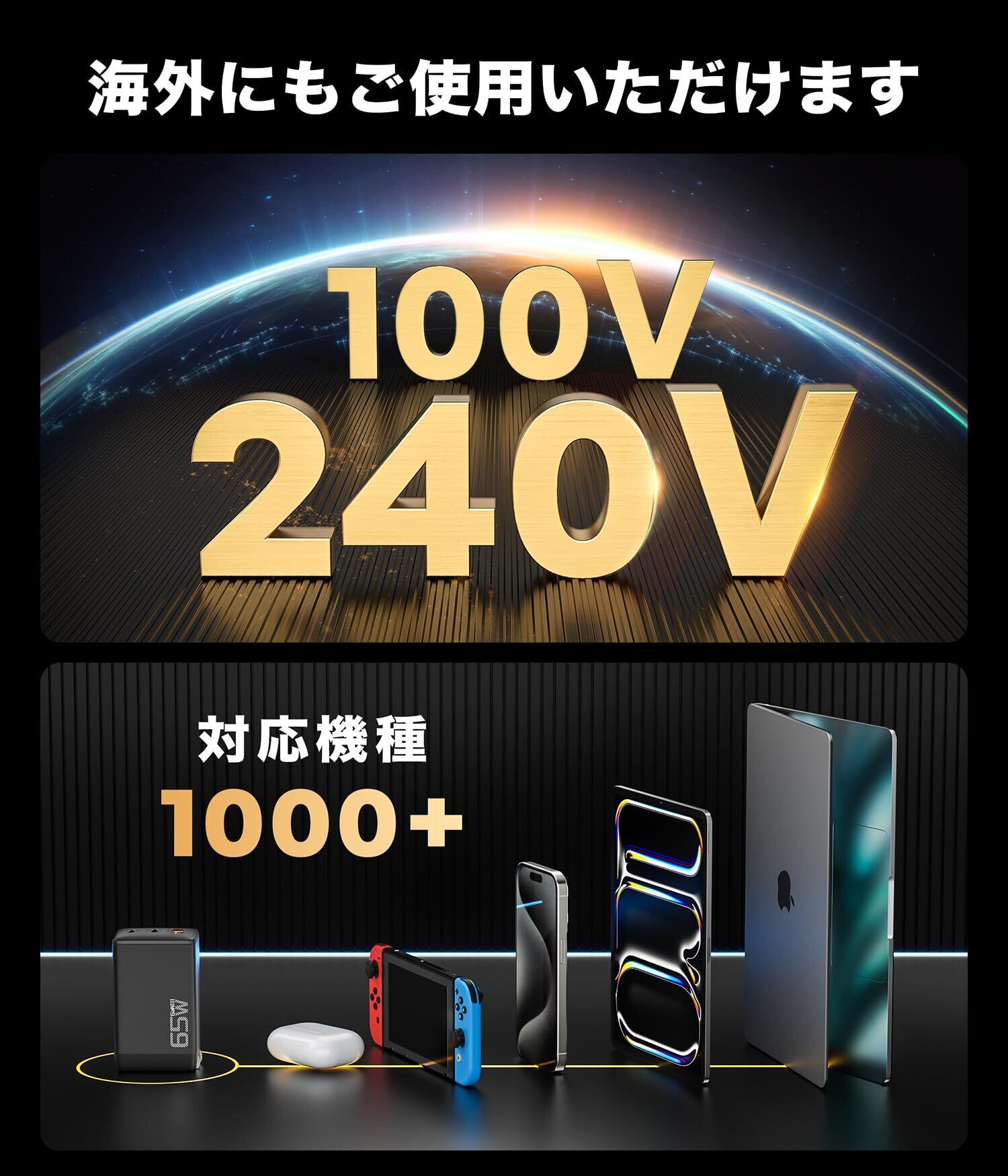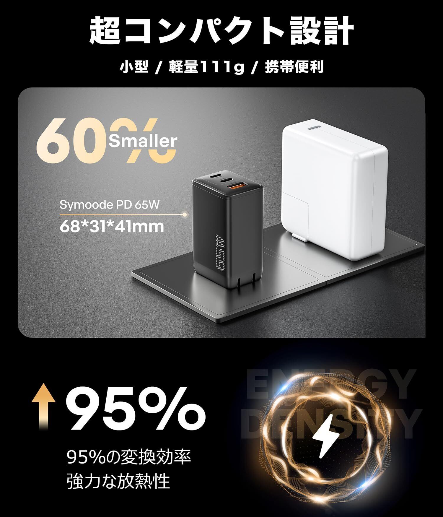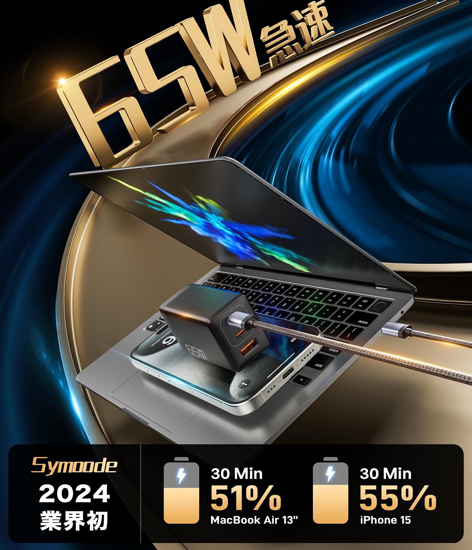 【新春セール】PD 65W 充電器 type-c 3ポート 三台同時充電 タイプc 折り畳み式 GaNIII技術 1M USB-C to C ケーブル付き ナイロン編み iPhone16e/iPhone16/15/14 MacBook iPad Galaxy Android各種 その他USB-C機器対応 PSE技術基準適合 黒 | ニコニコSHOP