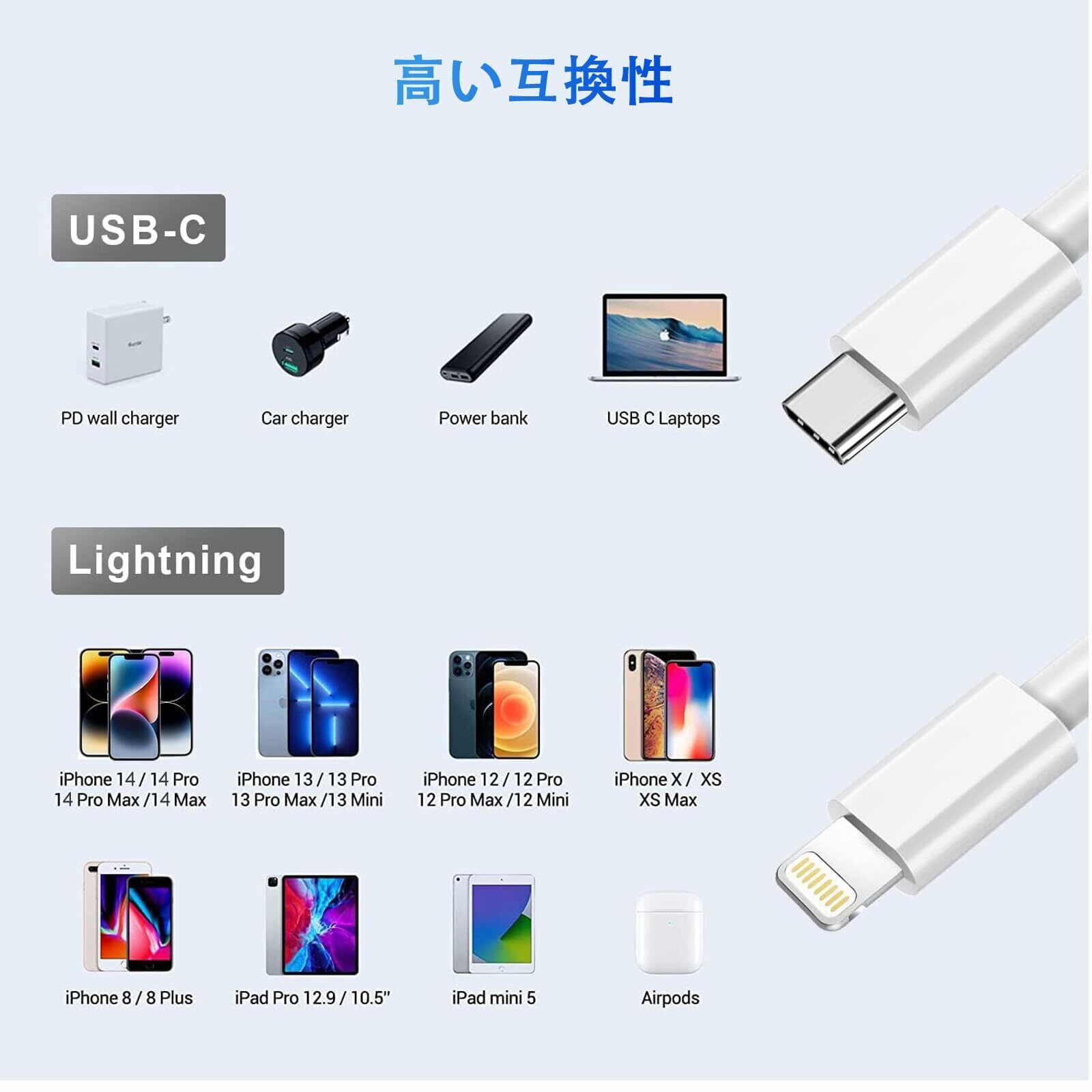 【高い互換性】すべてのライトニングデバイスの高速充電とデータ転送をサポートします。iPhone14シリーズ/iPhone13シリーズ/iPhone12シリーズ/iPhone11シリーズ/iPhone Xシリーズ/iPhone 8シリーズ/iPhone 7シリーズ/ipad/ipad mini/ipad pro/ipad air/airports/apple pencleなど、最新のiOS11/12/13/14/15/16にも対応します。