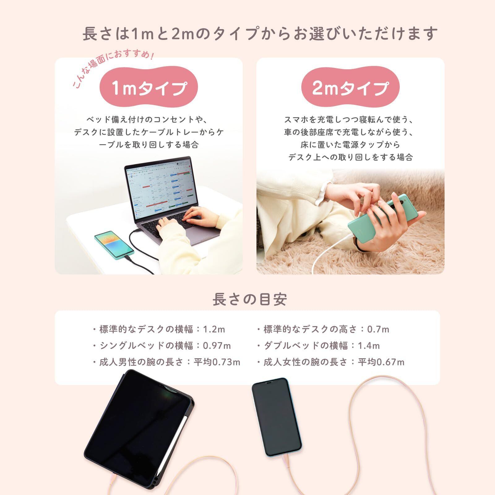 ▶▶▶【かわいいデザイン】毎日使うケーブルだから、見た目も触り心地も妥協したくないアナタに。「もちっと」のやさしい色味ともっちり触感はインテリアにも馴染みます。金具部分の上品なピンクゴールドもポイント。【なめらかで柔らかい】クネクネとした折れ癖やケーブルが絡むストレスから解放します。「もちっと」は柔らかいシリコン素材なので、癖がつきにくく絡みません。