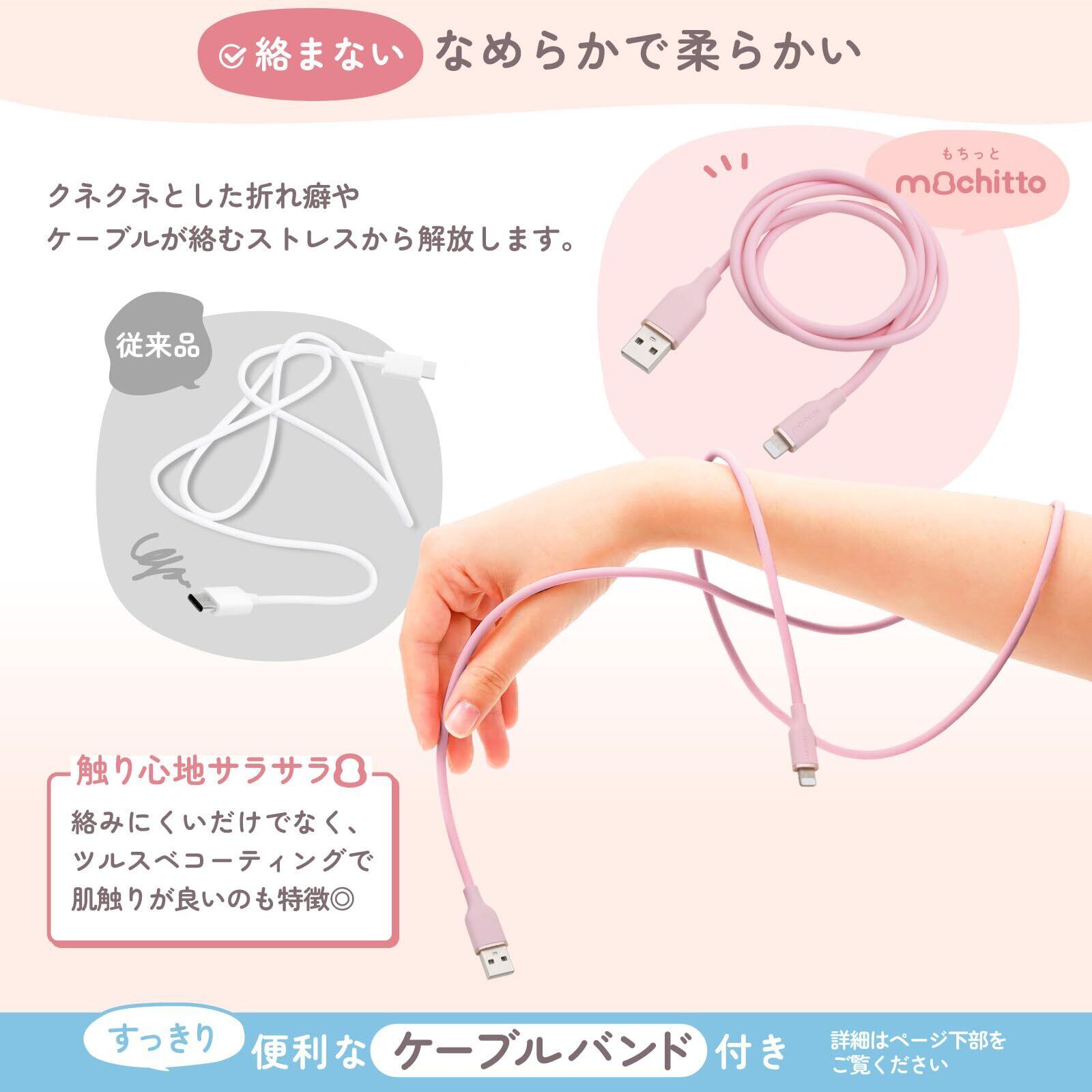▶▶▶【セット内容】USB Type-A to Lightning ケーブル×1本、ケーブルバンド×1本 【ケーブル仕様】MFi認証 / 出力5V/2.4A / USB2.0 データ転送 最大480Mbps【映像出力 非対応】もちっとケーブルは、充電・データ転送専用のケーブルです。映像出力には対応しておりません。【対応機種】iphone SE、iphone13、iphone14、iPad、AirPodsなどライトニングケーブル端末に対応しています。