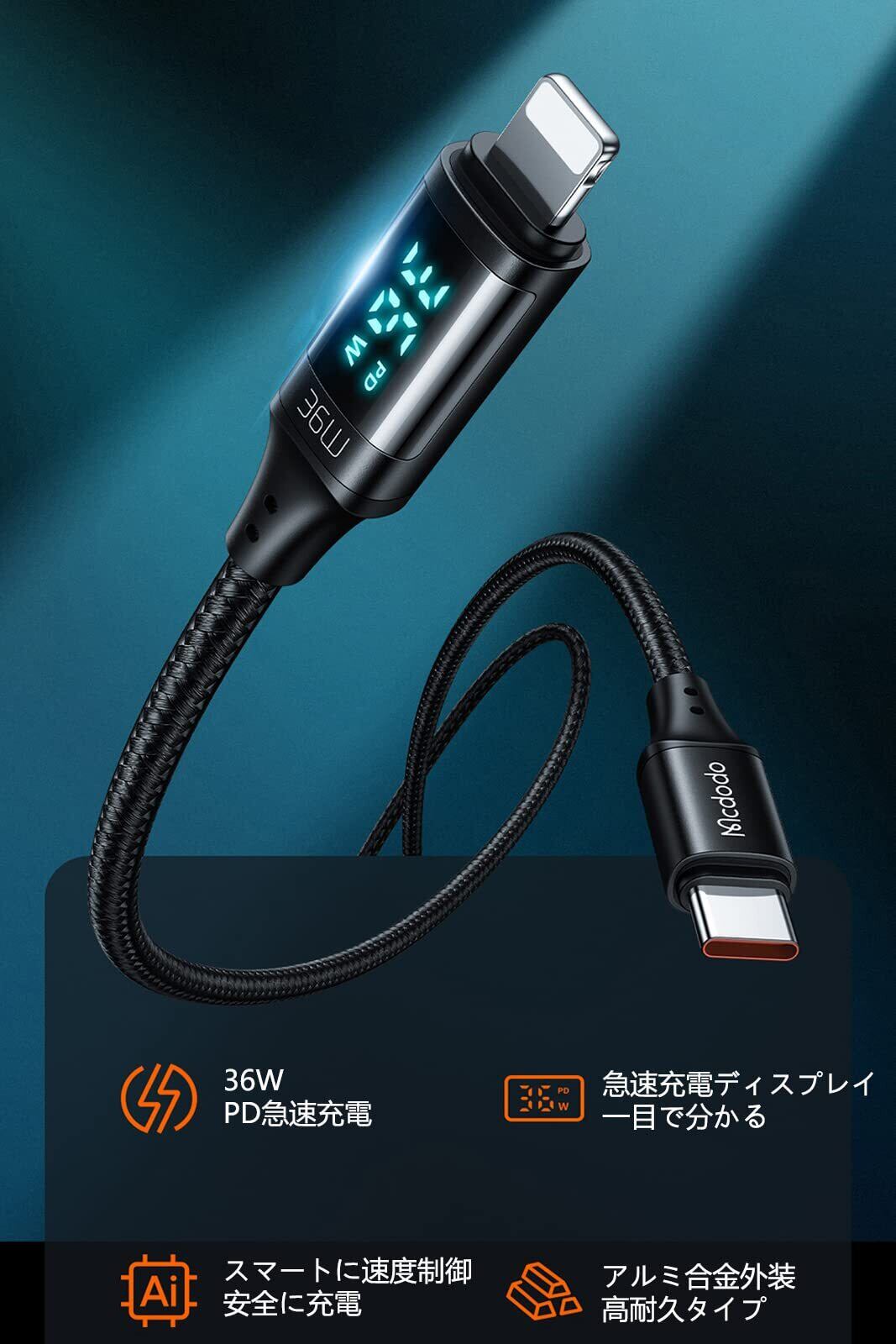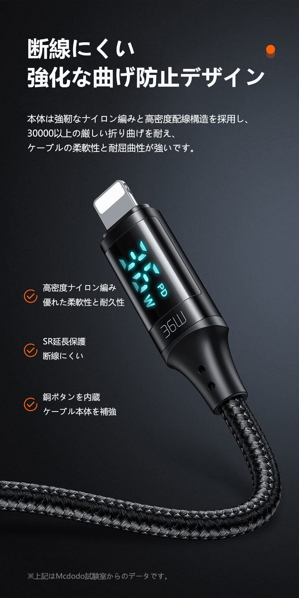 【安心な品質】:Mcdodoは12ヶ月の期間を持っています。もし何のご不明点とご問題がございましたら、お気軽に弊社にメールでご連絡ください。是非24時間以内に敏速に対応して致します。(注文番号は書のかわりとなります)。【パッケージ内容】:Mcdodo 出力デジタルディスプレイ 36W PD急速充電 USB-C to ライトニング ケーブル 約1.2m*1本