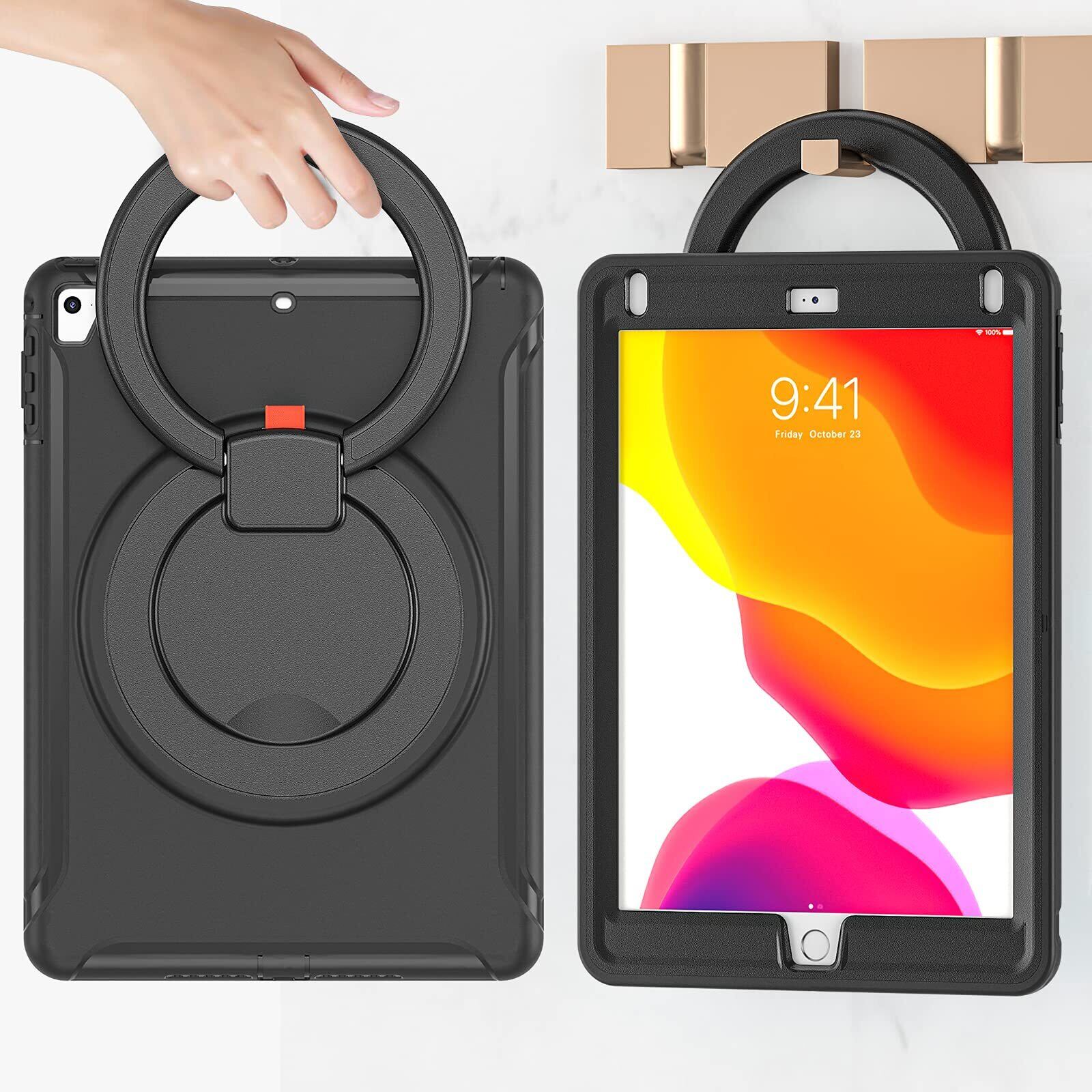 【数量限定】新型 iPad 2018 第6世代 2017 第5世代 ケース リング付き 衝撃吸収 軽い 頑丈 360°回転スタンド 多方向 ハンドル付 iPad Air2 Pro9.7 カバー 落下防止 キズ防止 キッズ アイパッド9.7 ケース (iPad5/iPad6/Air2/Pro9.7, 黒) | ニコニコSHOP