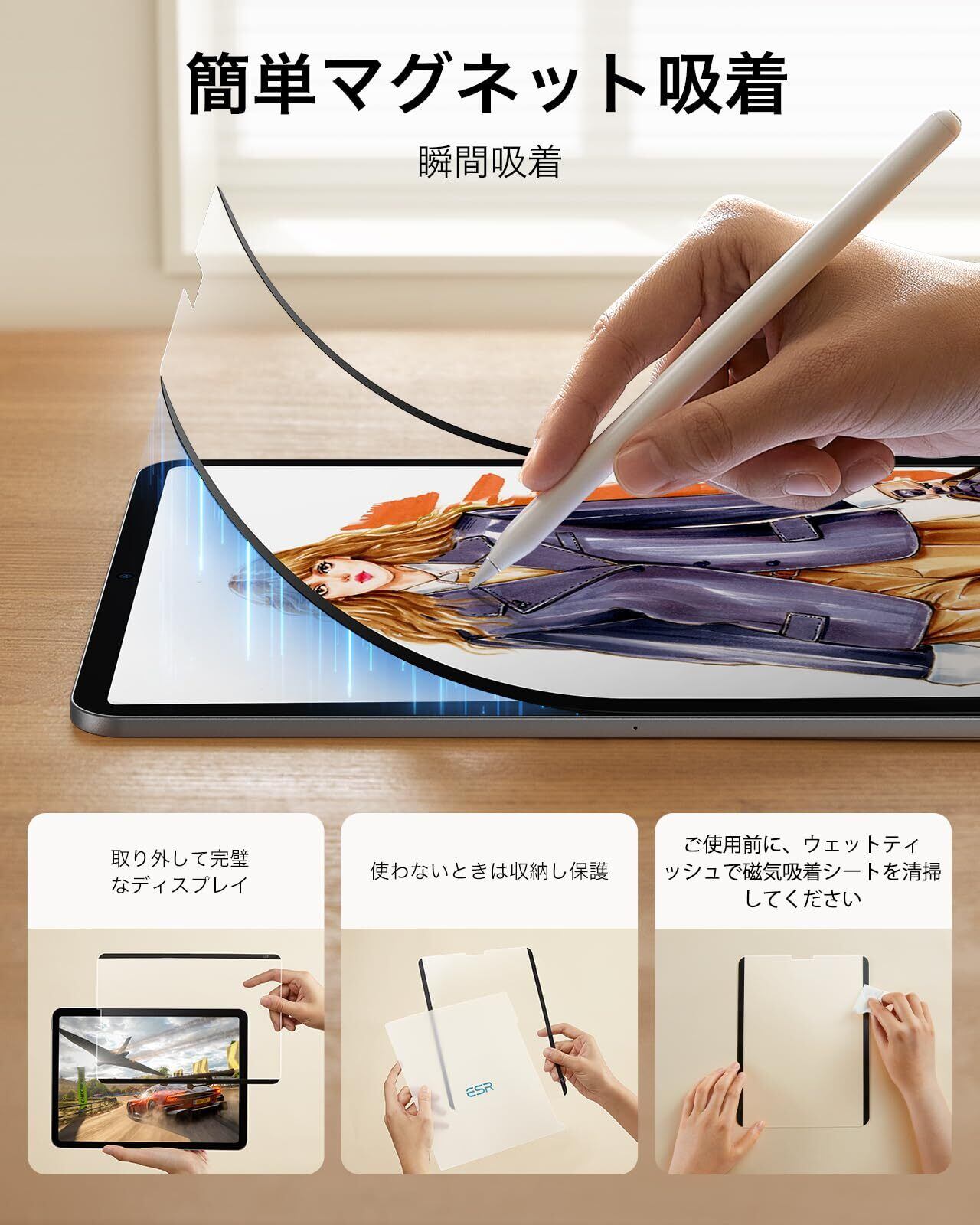 ESR iPad Air 第5世代 フィルム 2022、iPad Air 第4世代 2020、iPad Pro 11インチ(2022/2021/2020/2018)専用 ペーパーライクフィルム 着脱式 マグネットスクリーン保護フィルム 紙のような描き心地保護フィルム 再利用可能 強化フィルムと互換性あり マット仕上げ