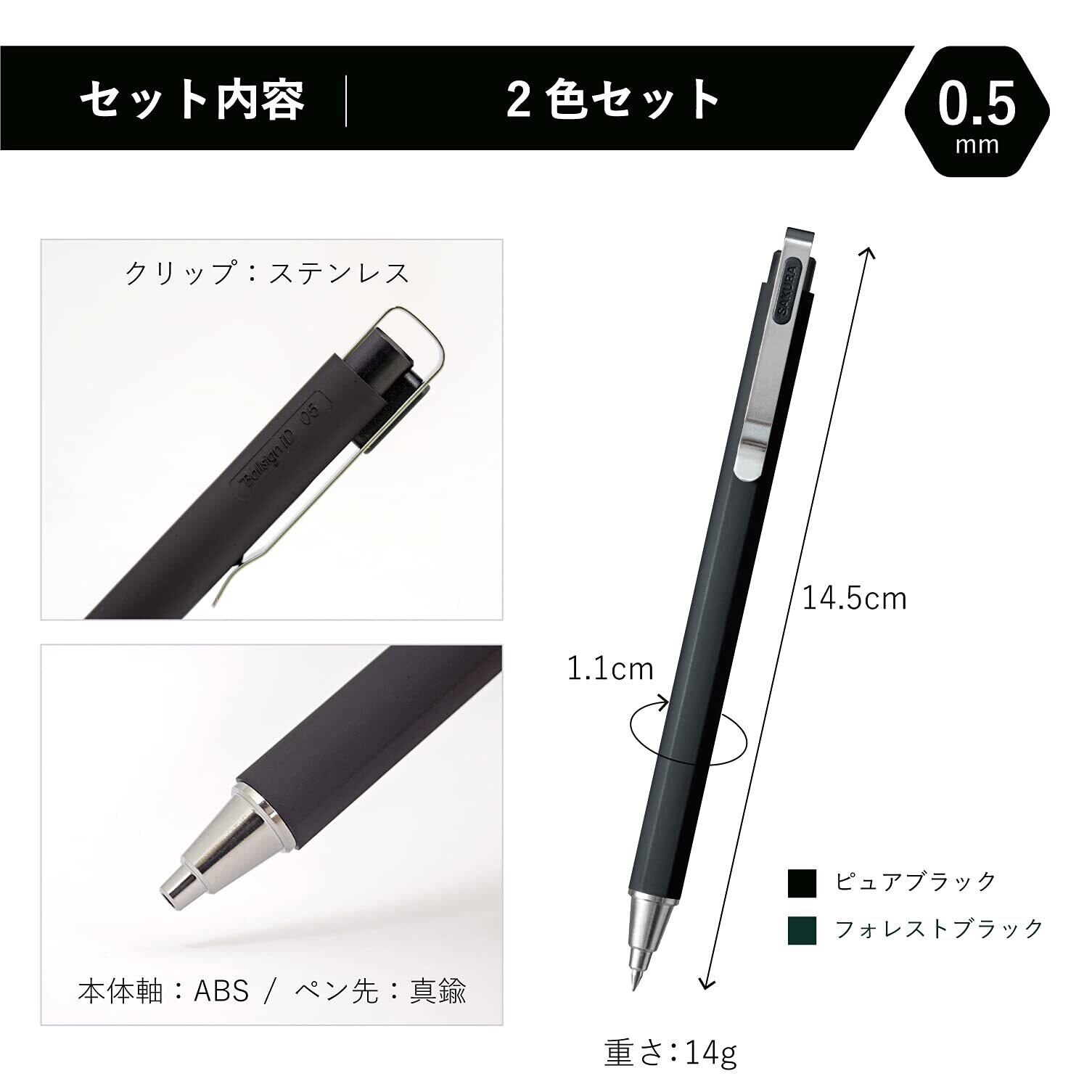 【セット内容】0.5mm・2色セット(ピュアブラック・フォレストブラック)
