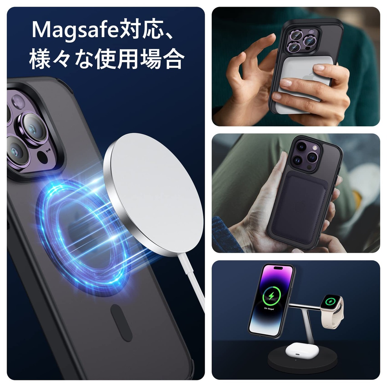 NIMASO ケース MagSafe対応 iPhone14Pro 用 ケース 半透明 カバー 米軍MIL規格取得 マグネット搭載 耐衝撃 マグセーフ対応 ワイヤレス充電対応 iPhone 14 Pro あいふぉん14pro 用 スマホケース NSC23A639
