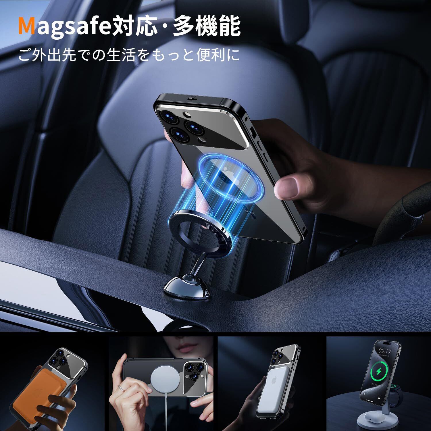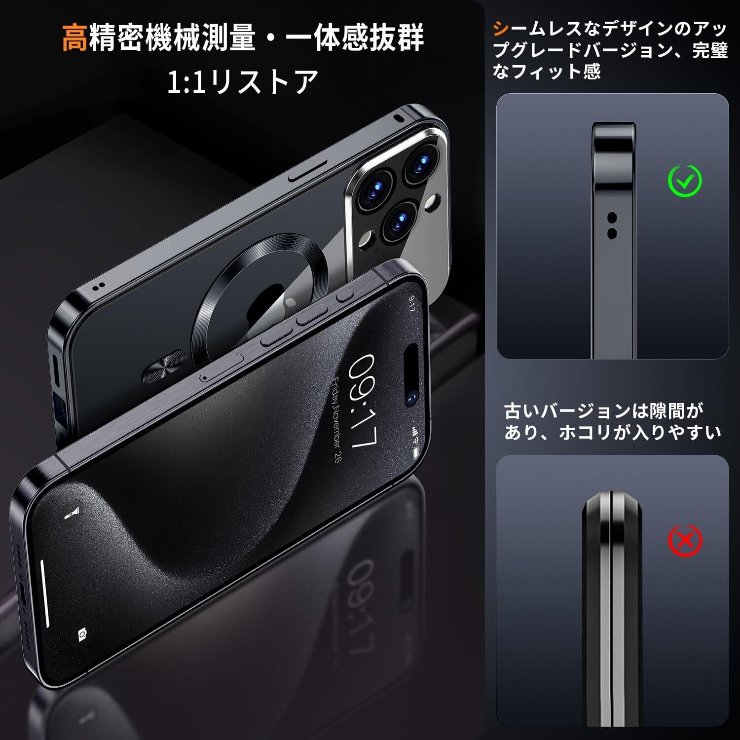 【高精度メカニカルロック和360 ° 全面保護】このiPhone 15 Pro Maxケースの上部には高精度のメカニカルロックが搭載されており、1回のスライドで1秒でロック/ロック解除が可能です。スマホケースを両側でしっかりとロックします。落としてもスマホがケースから落ちない、iPhoneを安全にロックする。さらに、複数の素材のアップグレードにより、ロックの耐久性と精度が大幅に向上しました。このいPhone 15 Pro Maxケースの両面は硬度9hの強化ガラス製です、側面には高品質の航空アルミ合金製を採用した高級感のある作り。前面、背面、側面、レンズをカバーできます。スクリーンプロテクターとレンズプロテクターを個別に購入するコストを節約し、ワンストップソリューションを提供します。