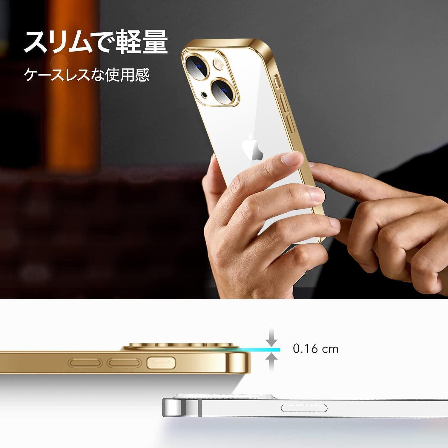 iPhone 15 用 ケース クリア 耐衝撃 iPhone15 用 カバー 軽量 薄型 TPU アイフォン15 用 スマホケース ワイヤレス充電対応 擦り傷防止 落下防止 ストラップホール付き メッキ加工- ゴールド