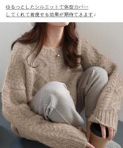 ◎着やすいニットプルオーバー。素材:ポリエステル。厚さ:厚手。伸縮性:あり。ストレッチ性が良いので締め付け感が感じれなく楽ちんな着心地が叶えます。身頃と袖にケーブルやダイヤルモンドのデザインがあり、おしゃれで大人可愛い印象に。襟、袖口及び裾にリブが施したので冷たい風の侵入を防ぐに役に立ちます。お尻まで隠れるの着丈で着やすいです。