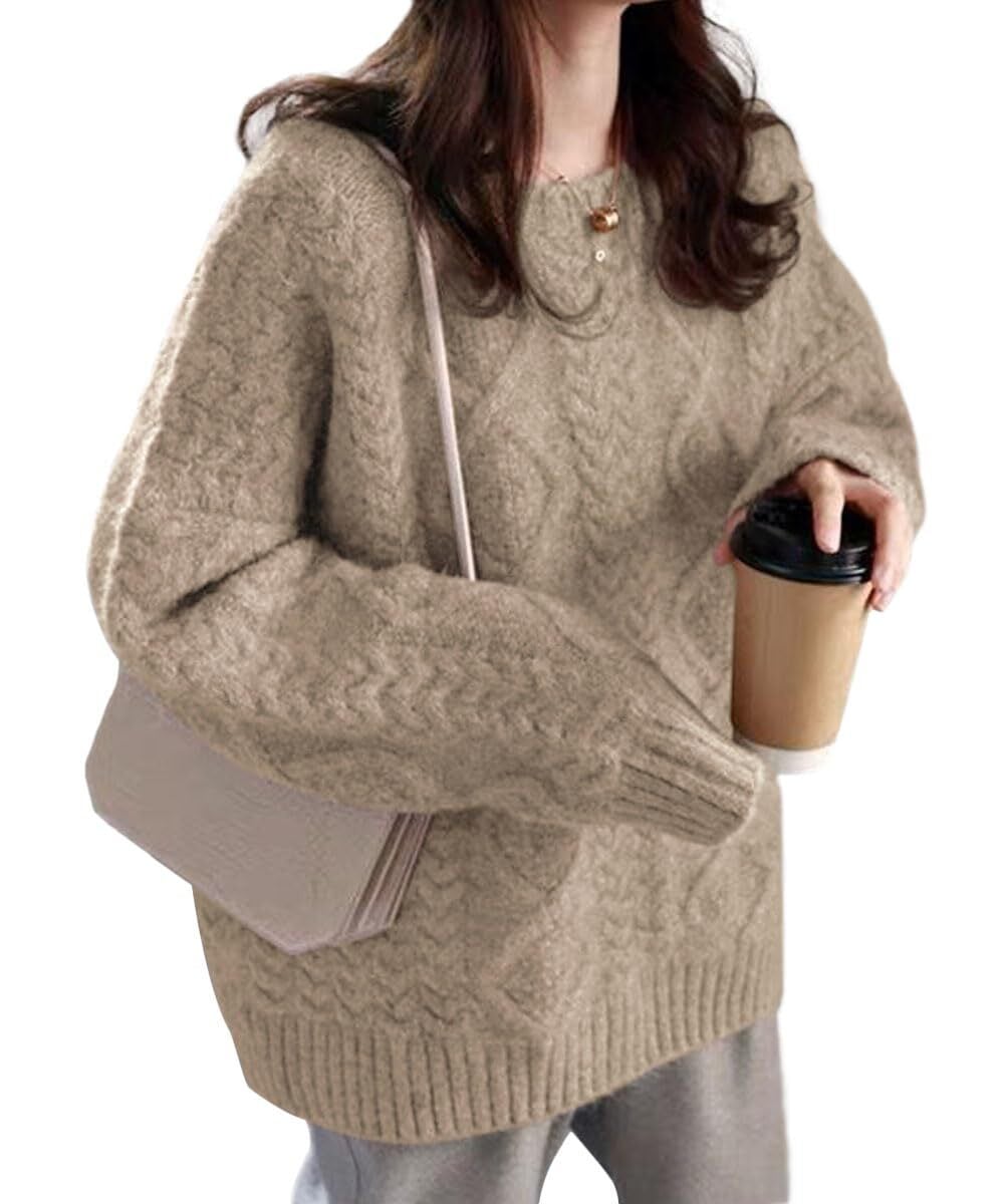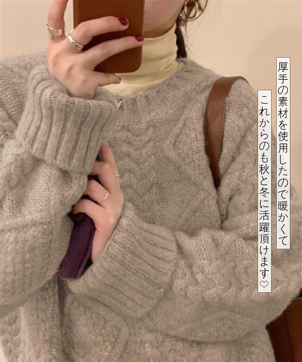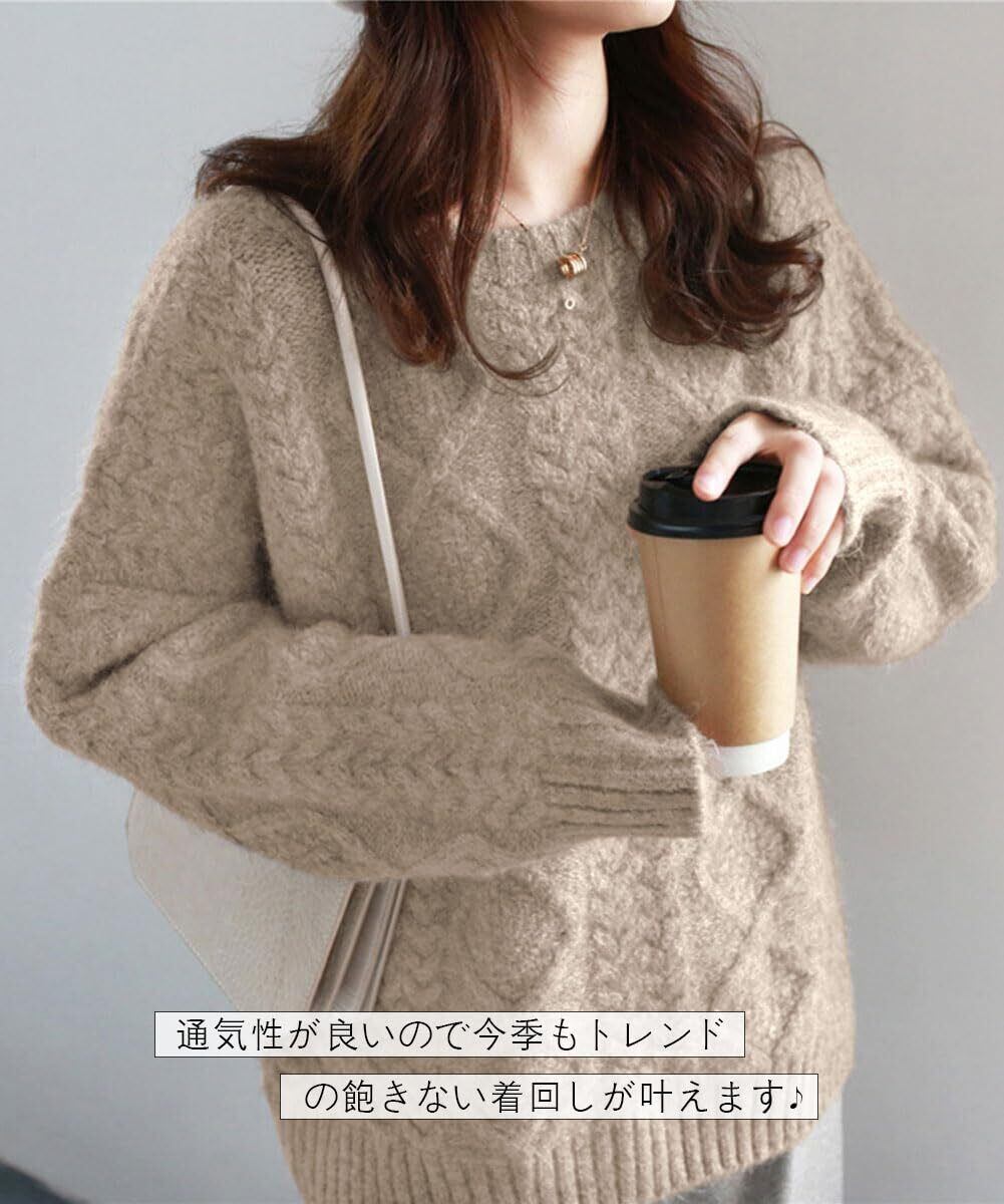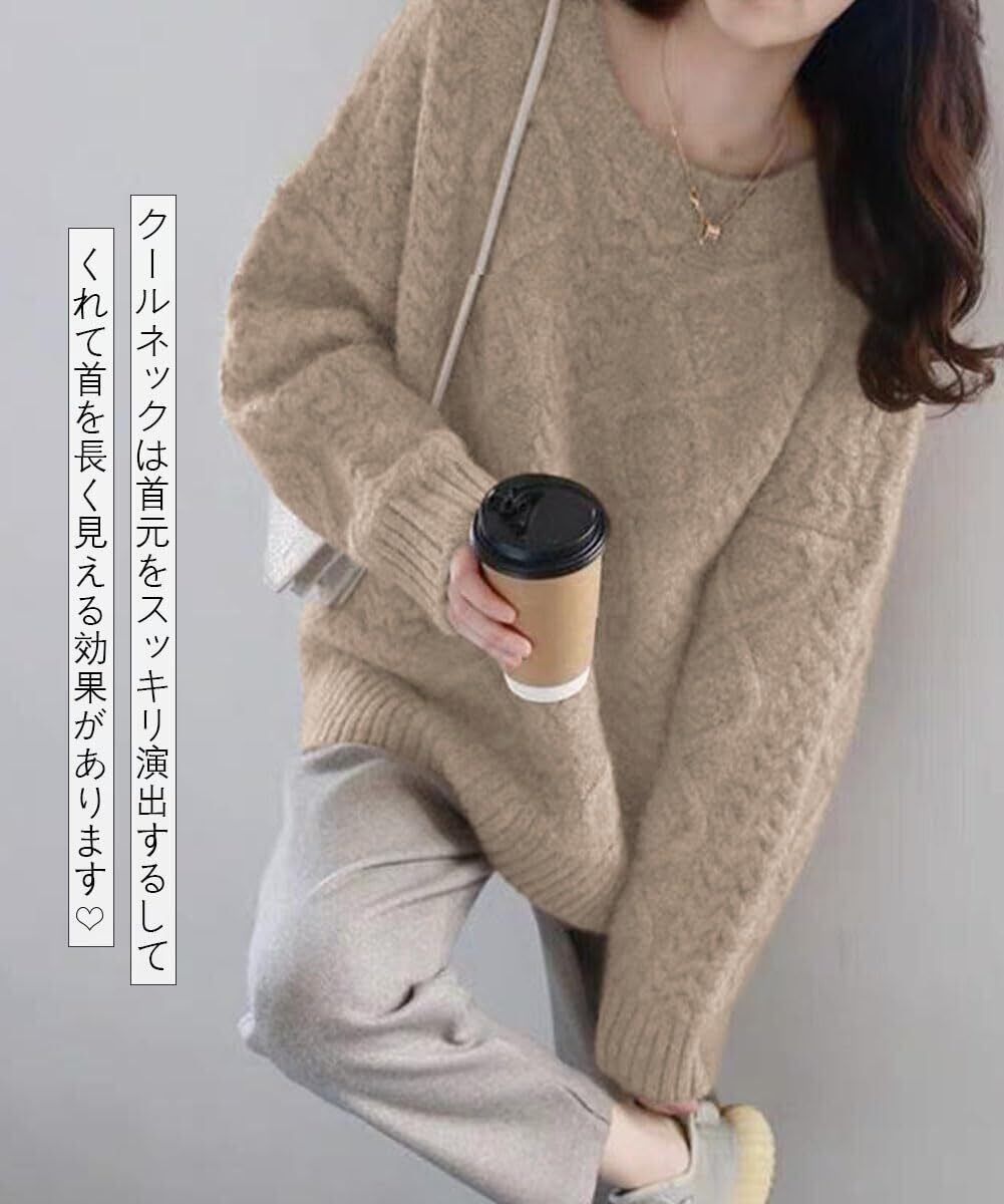 [Bidason] セーター レディー ニット トップス クールネック ケーブル ゆったり 体型カバー お洒落 可愛い 柔らか 暖かい 長袖 防寒対策 プルオーバー カジュアル 通勤 6色展開 秋 冬