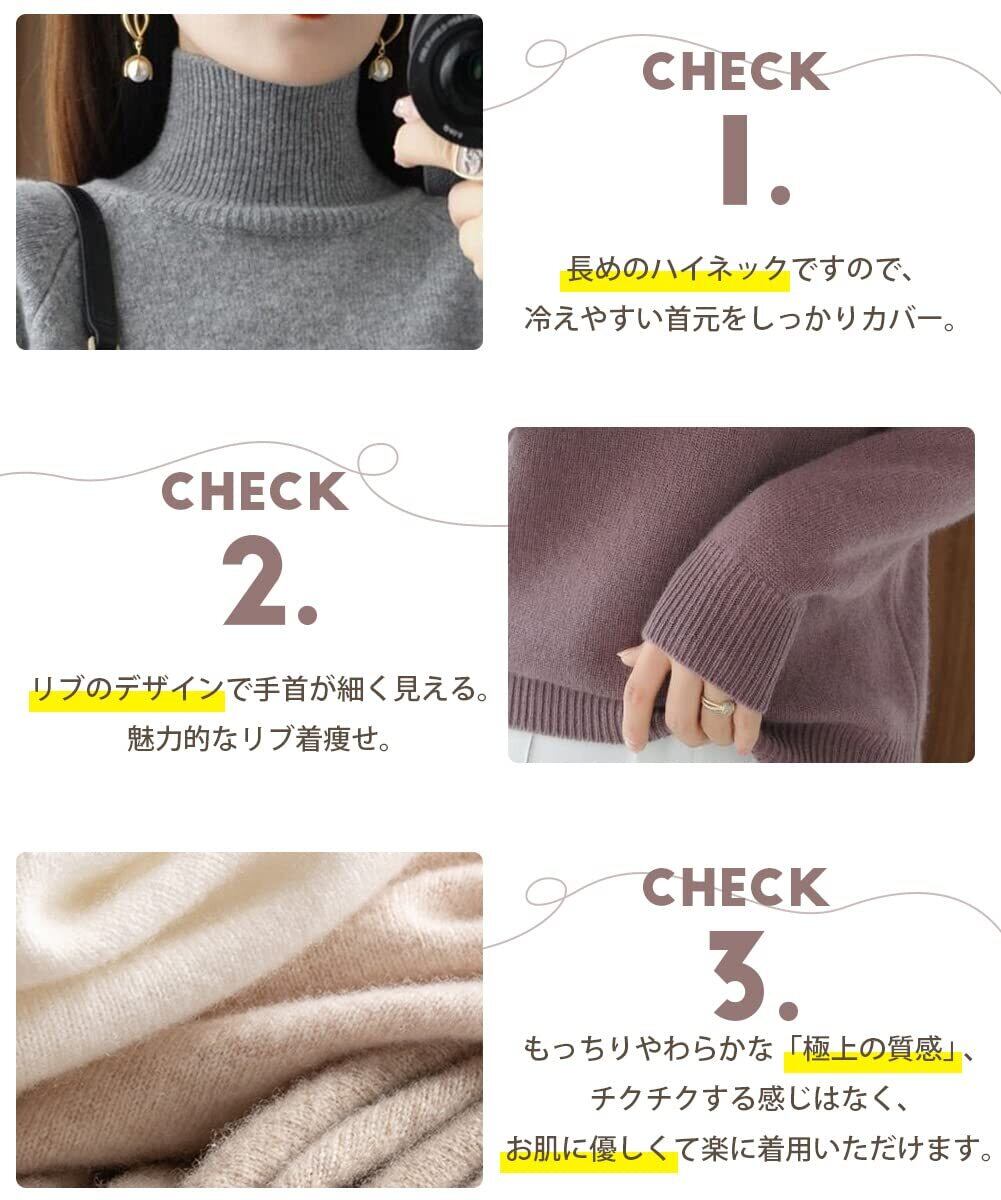 [YUMISS] ニット レディース トップス セーター 【暖かい厚手のニット素材・ハイネック・秋冬でも着痩せ】 リブ ストレッチ ゆったり 柔らかい 無地 シンプル 長袖 色展開 通勤 ニットソー カットソー カジュアル