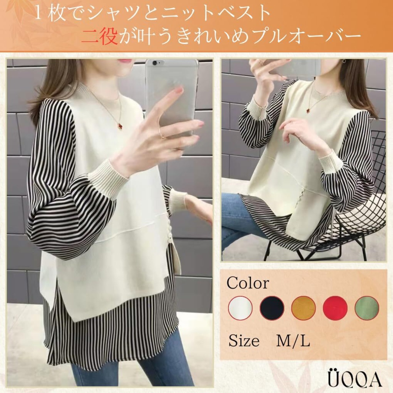 [UQQA] [これ1枚で決まる] チュニック レイヤード風 レディース ニット トップス 春秋 プルオーバー