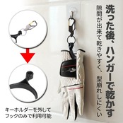 【用途】キャディバッグ、ボストンバッグに取り付け、置き忘れを防止。グローブの型崩れを防ぐハンガーは、グローブの間に隙間を作り、早く乾かすことで雑菌の繁殖を抑えます。空き時間に乾かすことができるので衛生面でも安心。
