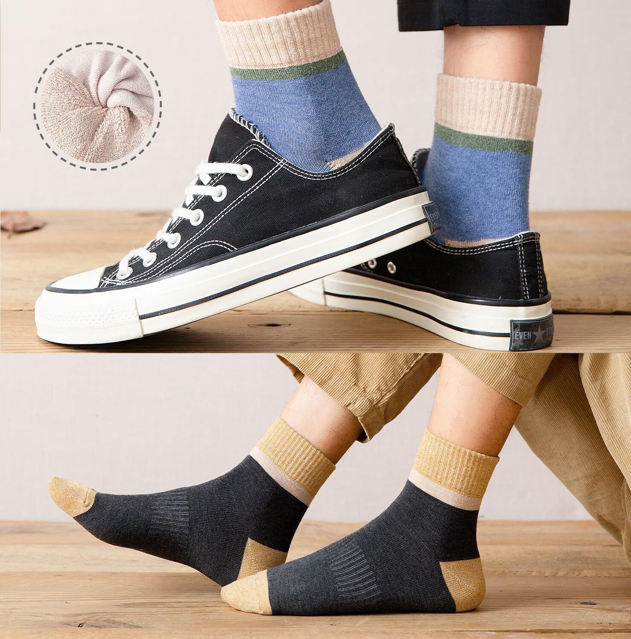 【しっかりとした中厚手の生地】10足10色セット春冬秋に活躍。速乾性とに優れたコットン素材でソフトながらしっかりとした着用感を体感出来ます。10色を用意しておりますので、日替りで履いてオシャレを楽しめる嬉しいし、秋冬雨雪の日に着替え便利な大量セットメンズ 靴下です。