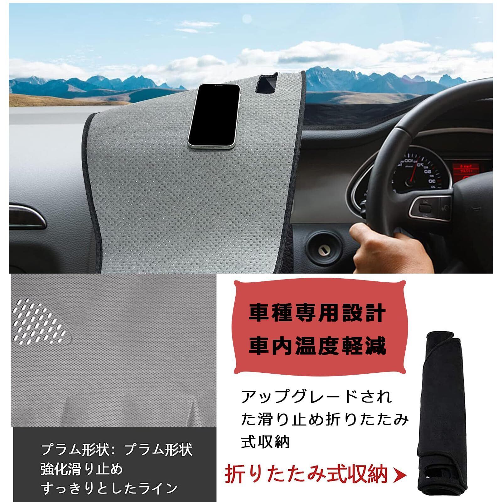 【高品質素材】素材は上質なフランネル素材です、優れた耐熱性と耐久性をもっており、厳し環境の中でも安心して使用していただけます。環境に優しい材質を採用します。ダッシュボードの上にマットを置くだけです。