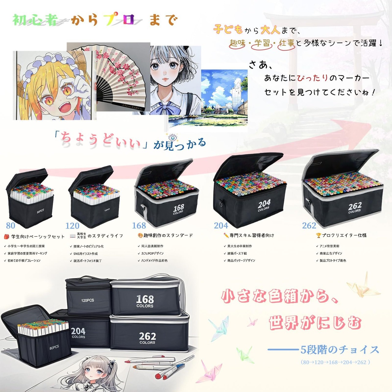 【幅広い色の選択】120色セットを用意し、色の選択肢が豊富で、イラスト、デザイン、スケッチ、建築、漫画、クラフトなどの各分野で活躍できます。