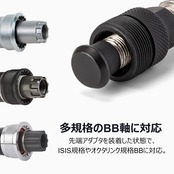 【多規格のBB軸に対応】先端アダプタを交換することでスクエア規格BBにも、ISIS規格やオクタリンク規格BBにも対応しています。