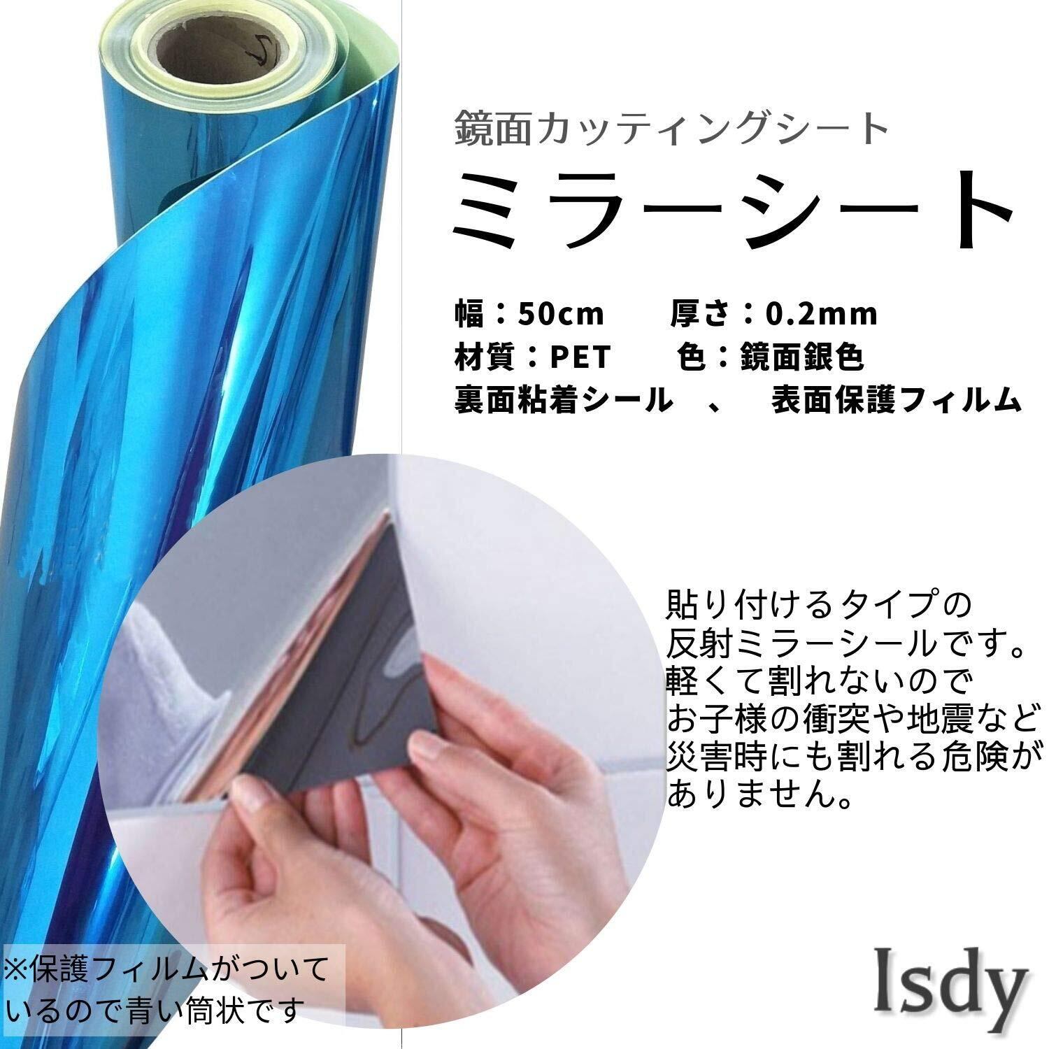 Isdy 割れない鏡 貼る鏡 ミラー シール シート ウォール ステッカー 鏡 反射板 レフ版 (幅50cm×長さ1.5m)