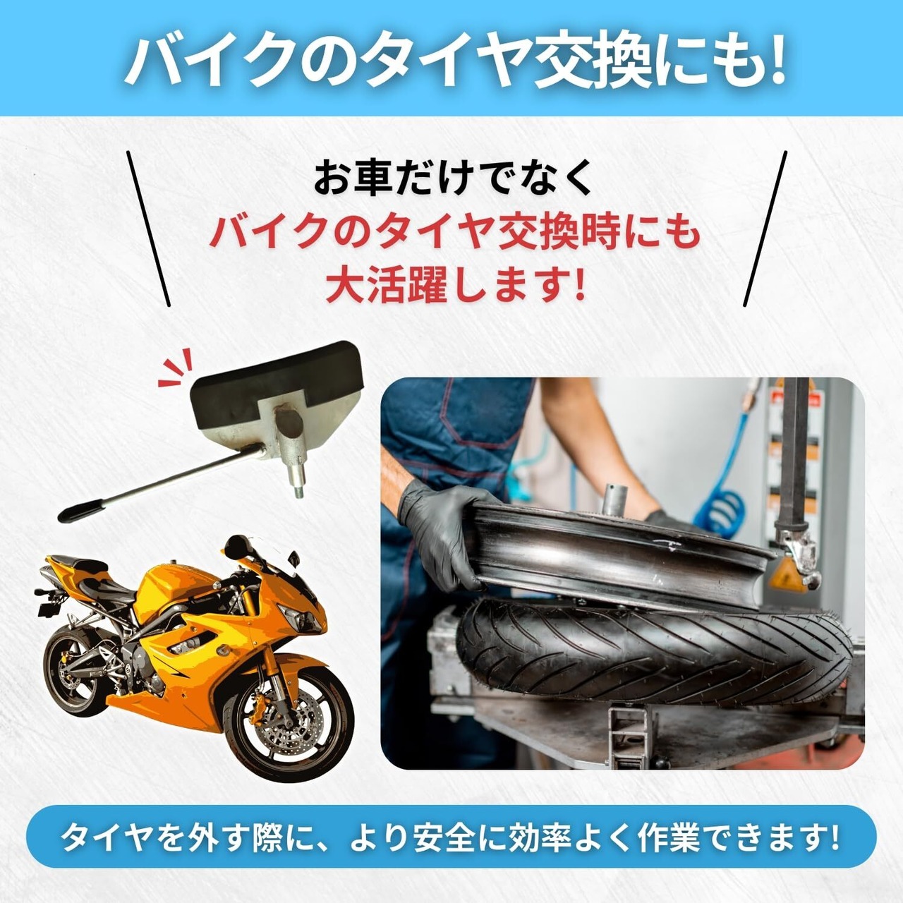 ビードブレーカーにてビード落としをする際、自動車やバイクのタイヤやホイールを保護するためのプロテクターアイテムです。 リムプロテクターとしての役割も担います。