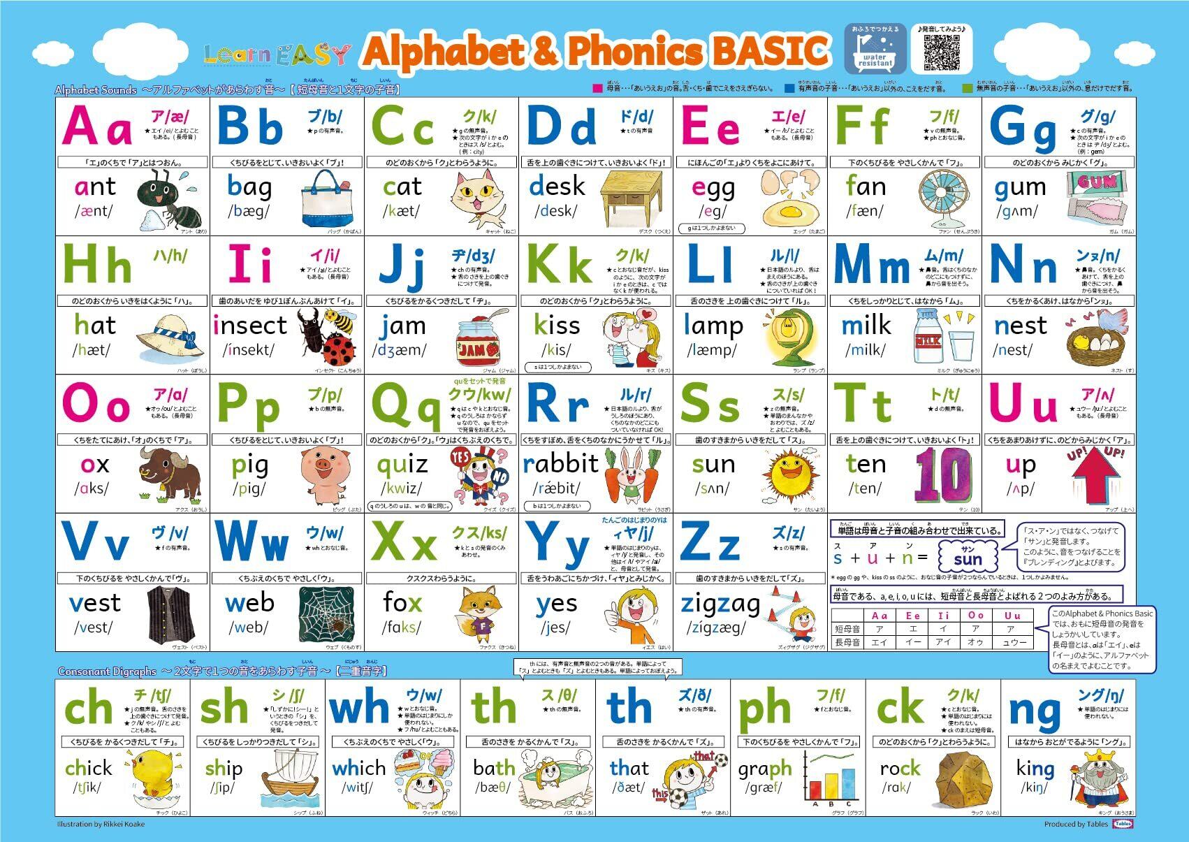 【人気商品】LearnEASY アルファベット&フォニックス表ポスター ベーシック 解説付き 音声QRコード付き ABCポスター ルール 一覧 教材 小学校受験 (お風呂用【防水素材】) | ニコニコSHOP