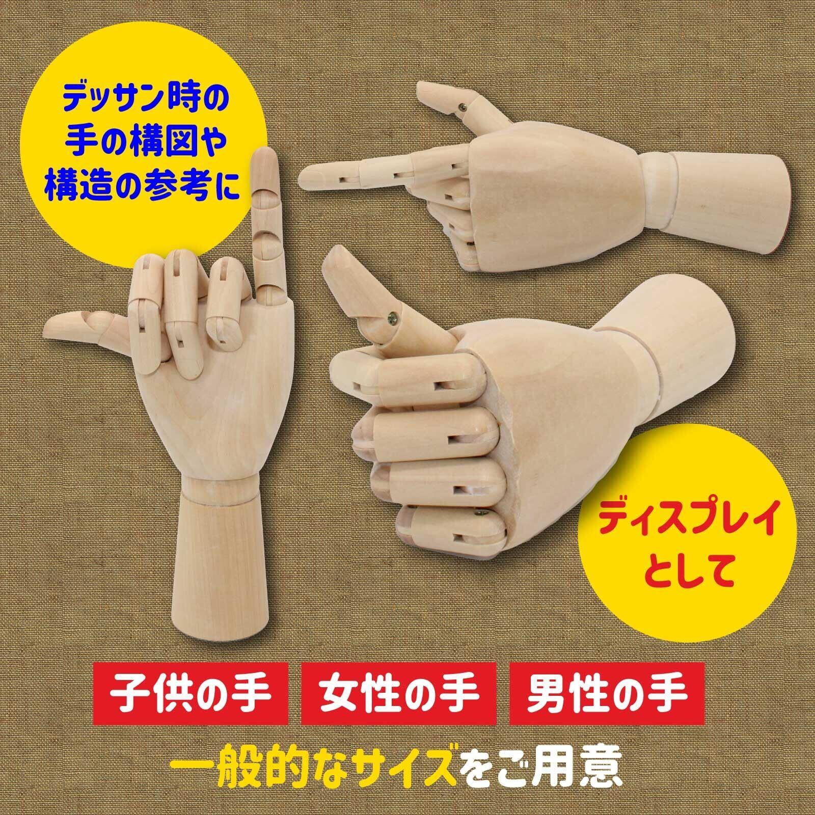 【実物大のサイズ】子供・女性・男性の一般的な手のサイズに合わせて制作されています。手の構図や構造の参考にすることができます。