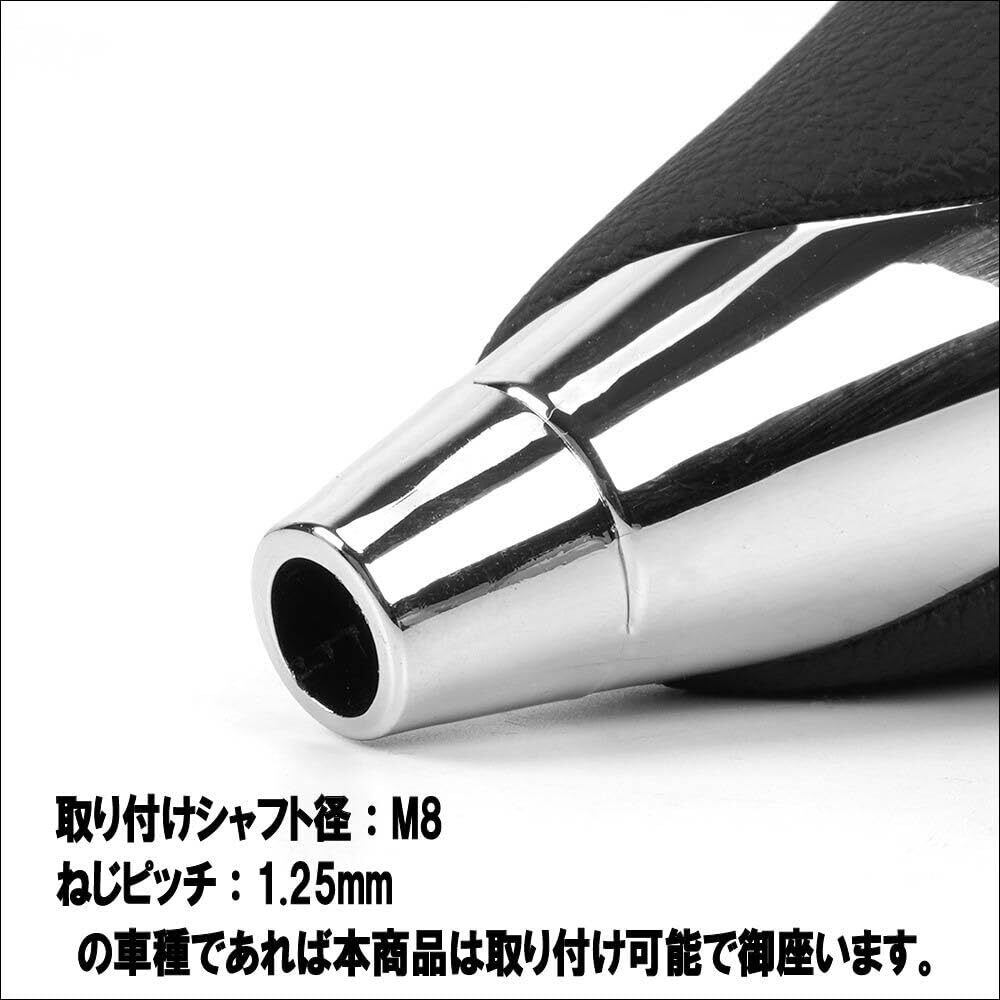 【商品内容】・本体×1個【サイズ】・縦:約92mm・幅:約42mm・取り付け開口:10mm・取り付けシャフト径:M8・ねじピッチ:1.25mm【材質】PP/PVCレザー【カラー】① ピアノブラック×ブラックレザー ② メッキ×ブラックレザー ③ カーボン調×ブラックレザー ④ ウッド調×ブラックレザー ⑤ レッドウッド調×ブラックレザー ⑥ イエローウッド調×ブラックレザー の計6種類をご用意しております。【適合車種】・トヨタ 汎用タイプであり、ハイエース 200系 / ハリアー / アルファード / シエンタ / カローラ / ヴォクシー / クラウン / ハイラックス 等様々な車種に取り付けが可能です。 ※ 記載している車種はあくまでも参考車種になりますので、ご購入前にお車のシフトノブ取り付け径がM8×1.25mmであることをご確認下さい・記載している車種以外でも、取り付けシャフト径:M8・ねじピッチ:1.25mm の車種であれば取り付けは可能で御座います。本商品の寸法等を確認していただき取り付け可能かのご判断をお願い致します。