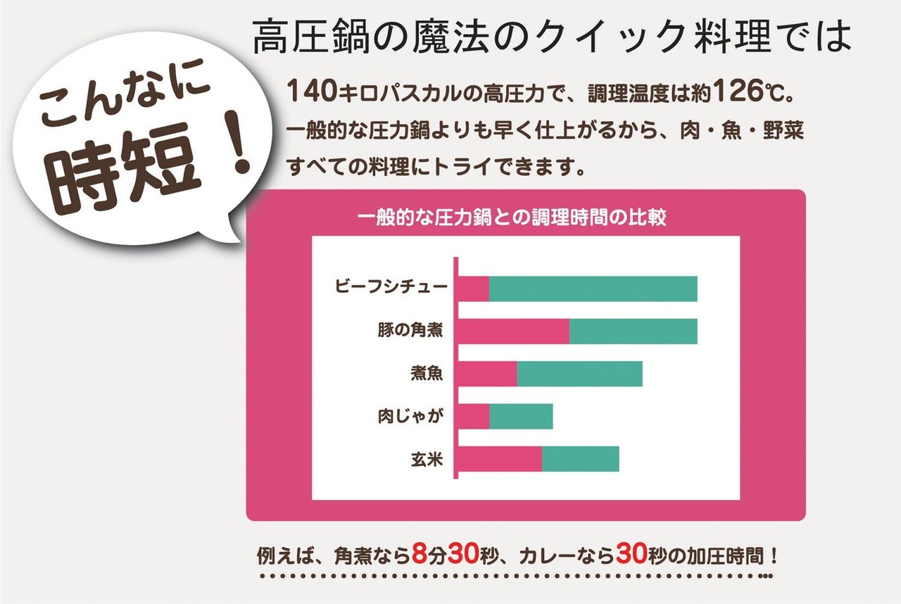 日本最高クラスの圧力(140kpa・約126度)で、より短時間で調理が出来る