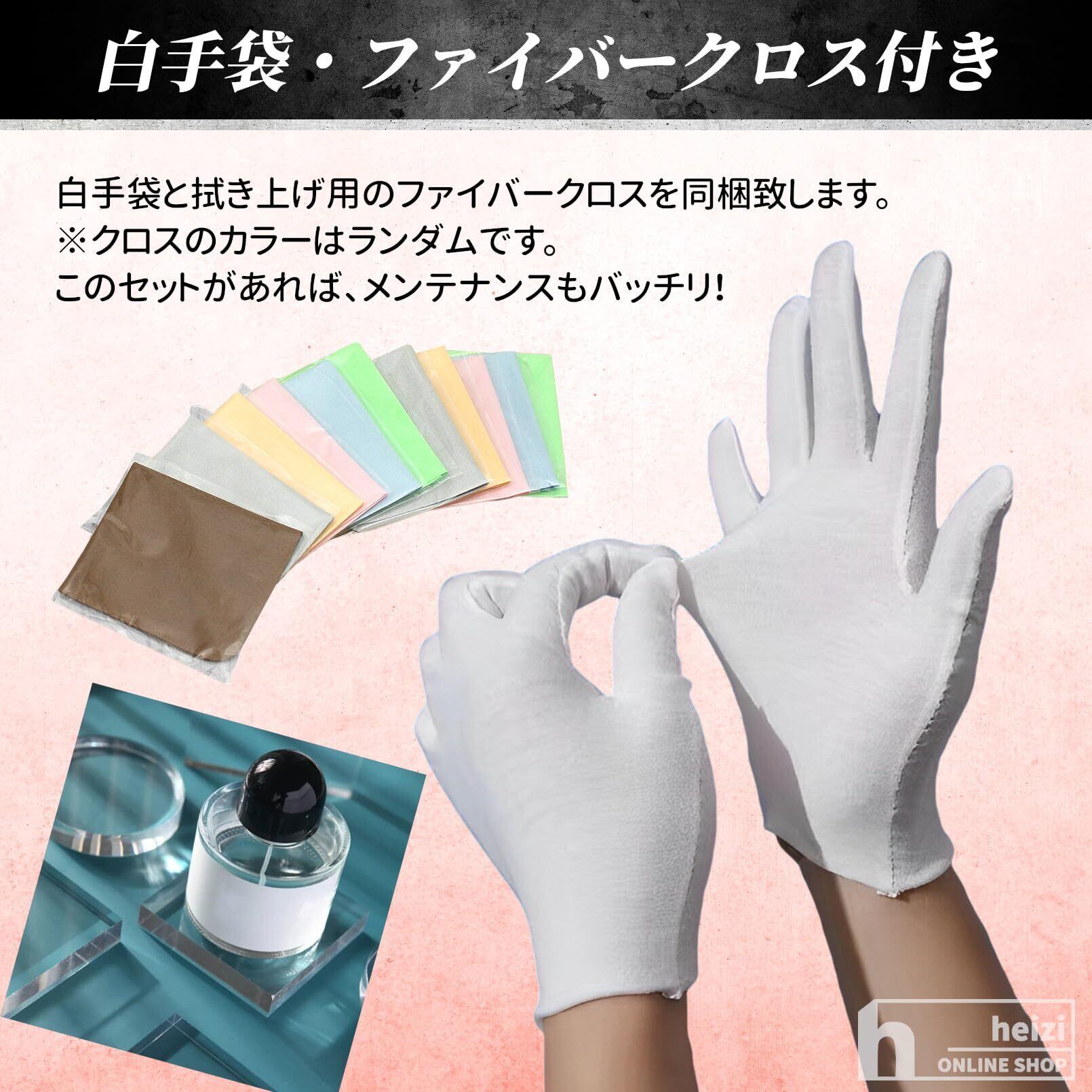 【インテリアに】コスメやアクセサリー、フィギュア、時計などお気に入りのアイテムを美しくディスプレイ。ただ置くだけで神秘的な印象に。乗せた物や周りの雰囲気を損ねることなく、様々なお部屋にマッチするデザインなのでインテリアとしてもオススメ。白手袋・ファイバークロス付き