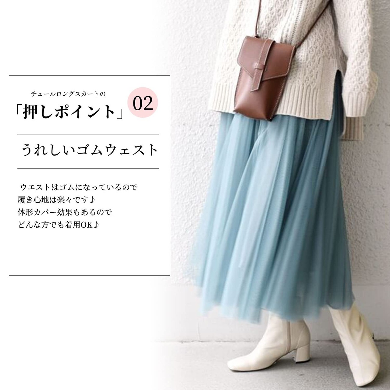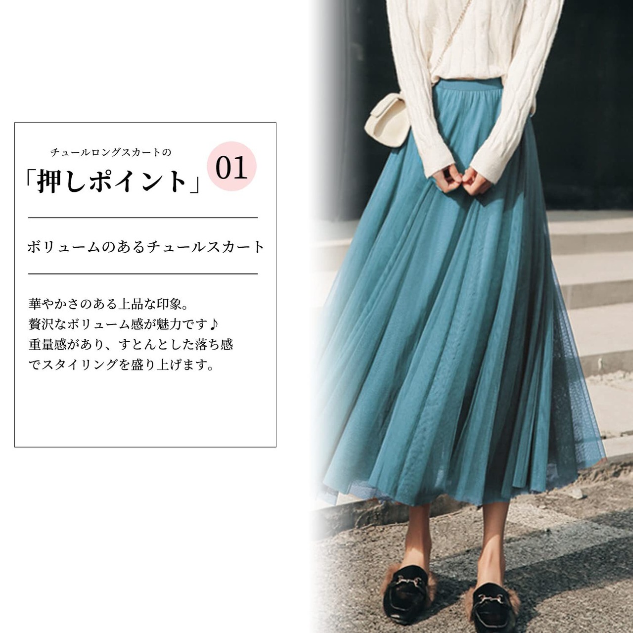 上品さと華やかさを引き立てる贅沢なボリューム感が魅力のチュールスカート。