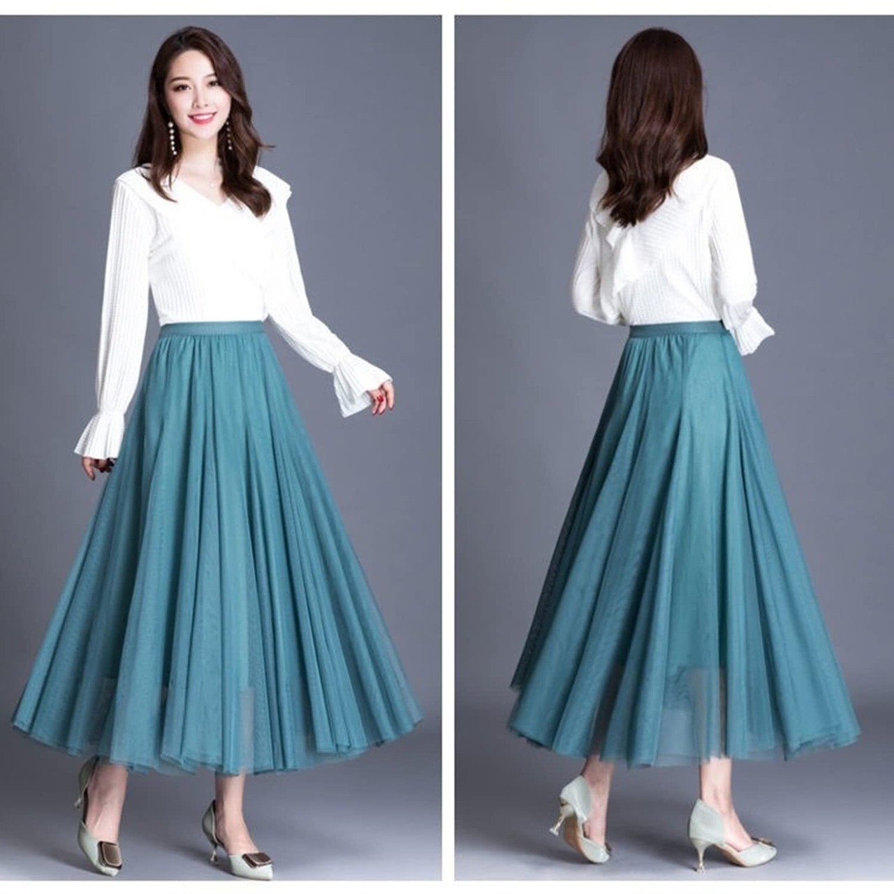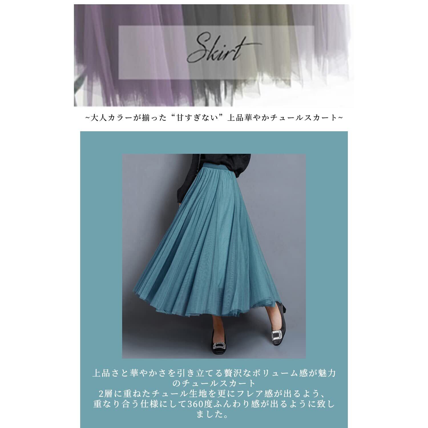 【新着商品】[Augmap] [限定ブランド] スカート レディース プリーツ チュールスカート ロング丈 ロングスカート 無地 レース きれいめ フレアスカート ボトムス ウエストゴム ミモレ丈 黒 グレー 女子会 デート 春 夏 秋 冬 | ニコニコSHOP