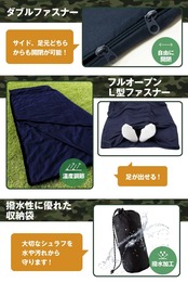 【安心のアフターフォロー】 ◎日本ブランドのbunny’s campでは、ご購入後もしっかりとアフターフォロー!お困りごとはお気軽にお問い合わせください。また、独自の最大120日間もご利用いただけます。 ◎当店では、専任の担当者が「ファスナー」や「縫製の細部」まで1点1点丁寧に検品を行っております。基準をクリアした製品のみお届けいたします。 ◎商品仕様:◆サイズ:約205㎝ ×75㎝ ◆収納サイズ:約20cm ×9cm◆完全展開時:約205㎝ ×150㎝ ◆重さ:約340g ◆カラー:3色(ブラック、グレー、ネイビー)