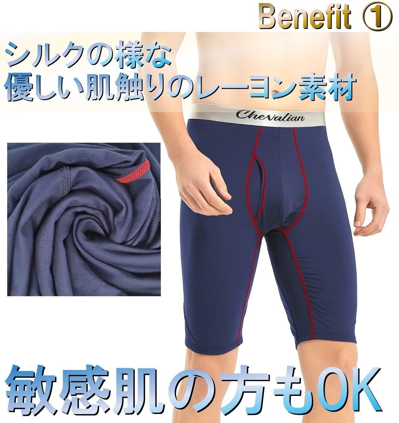 [シュバリアン] S~8L 前開き 股ずれ防止 ロングボクサーパンツ ひざ上丈 通気 吸汗 レーヨン メンズ 2枚 4枚 8枚セット