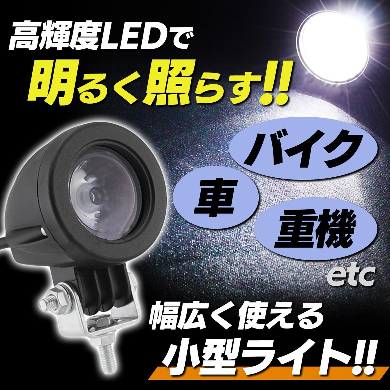 汎用タイプで高輝度のCREE製LED(10W)スポットライトです。 LEDなので省エネで明るく、悪天候でも視認性に優れているので安全走行を実現します。