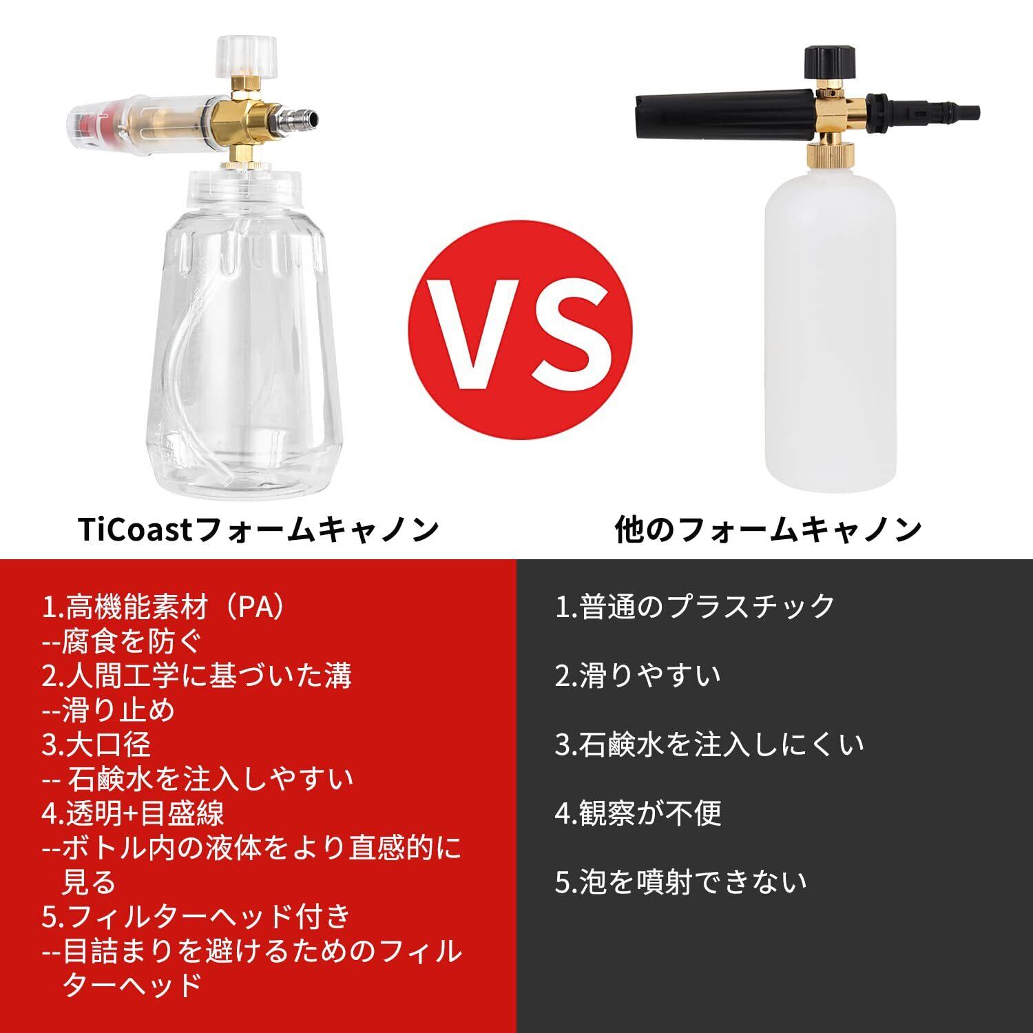 【特価セール】TiCoast フォームキャノン 1.0L 洗車用フォームガン 1/4クイックコネクター付き 圧力洗浄ガン用 高圧洗浄機用 フォームランス 高発泡 ダイヤル付き 泡量調節可能 スノーフォーム (透明) | ニコニコSHOP