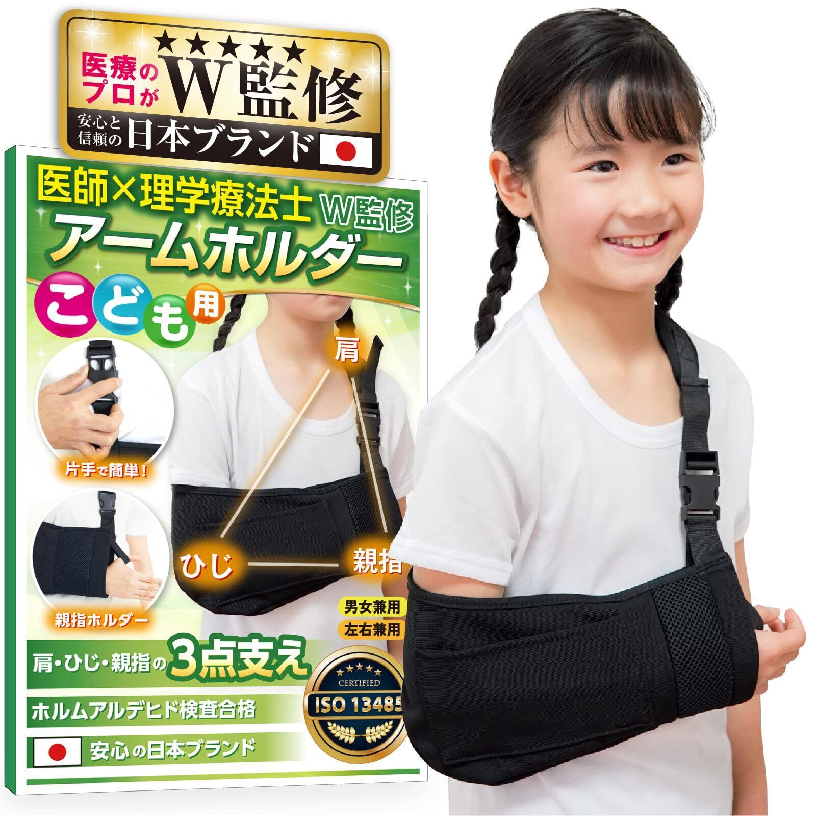 アームホルダー 子供 【医師×理学療法士がW監修】[日本ブランド] 【子供用 120~140cm】【ワンタッチ簡単装着で外れにくい】(肘がこすれない痛くならない柔らかタイプ) アームスリング 腕用サポーター 三角巾 腕吊り 左右兼用 腕用 (身長120~140cm)