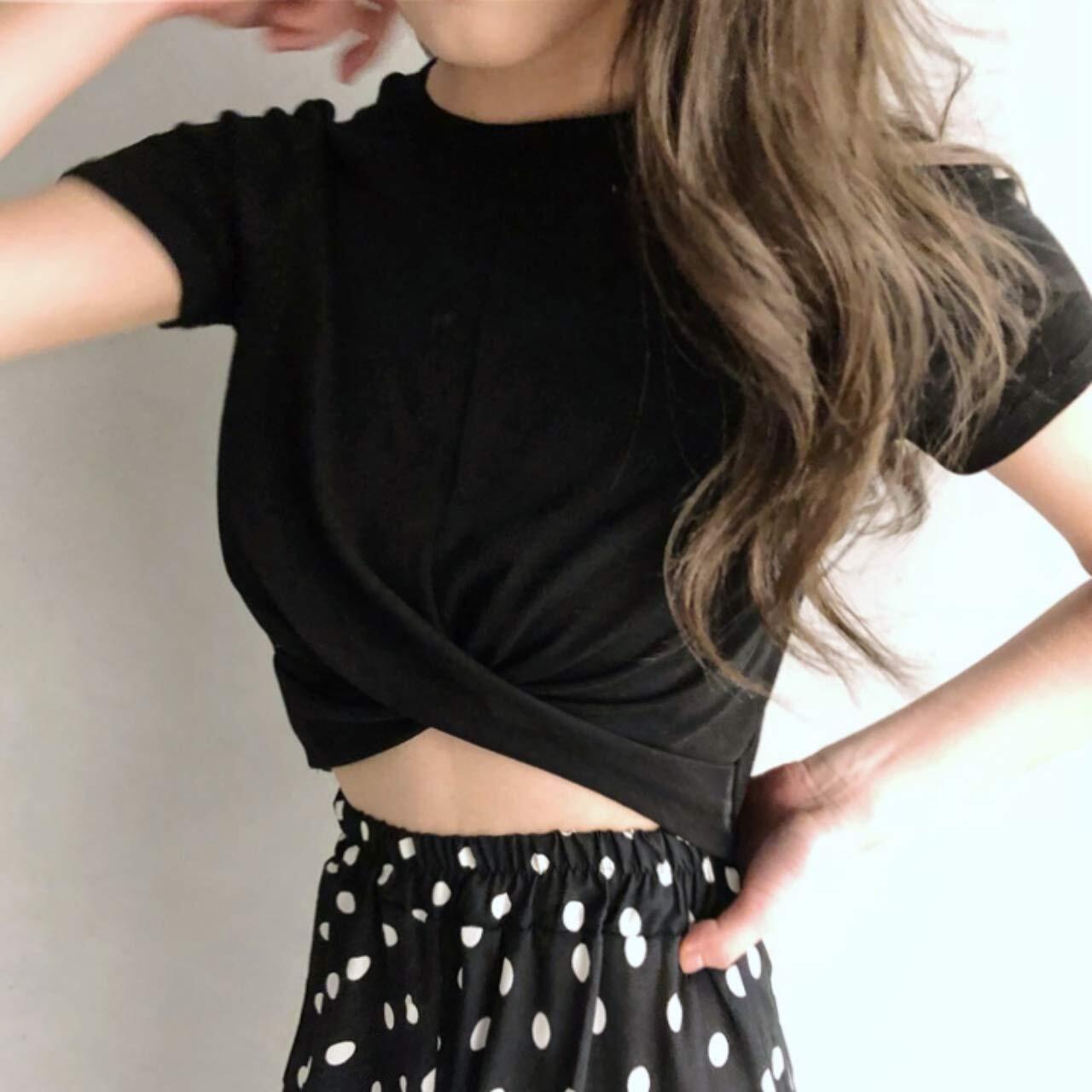 [ブブ オーハナ] Tシャツ 半袖 クロップド 無地 ギャザー ショート丈 短め レディース
