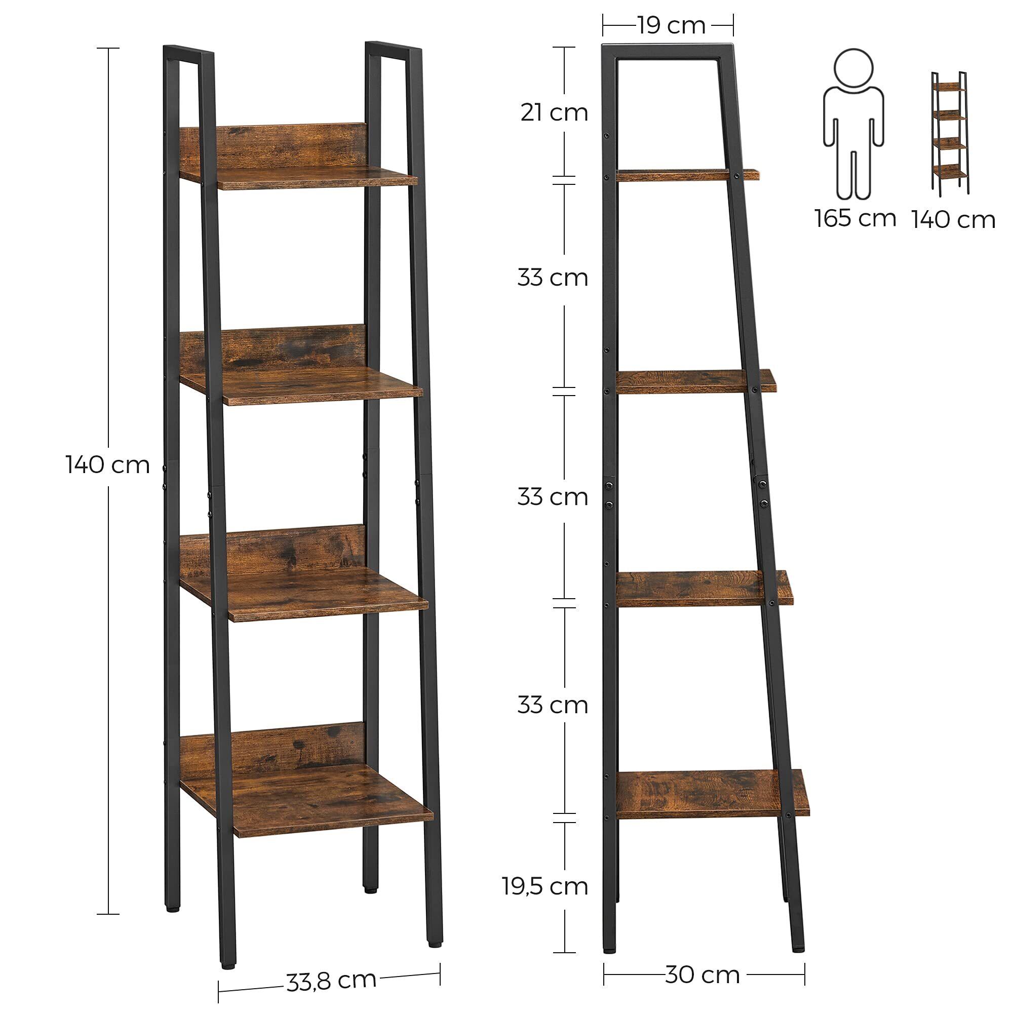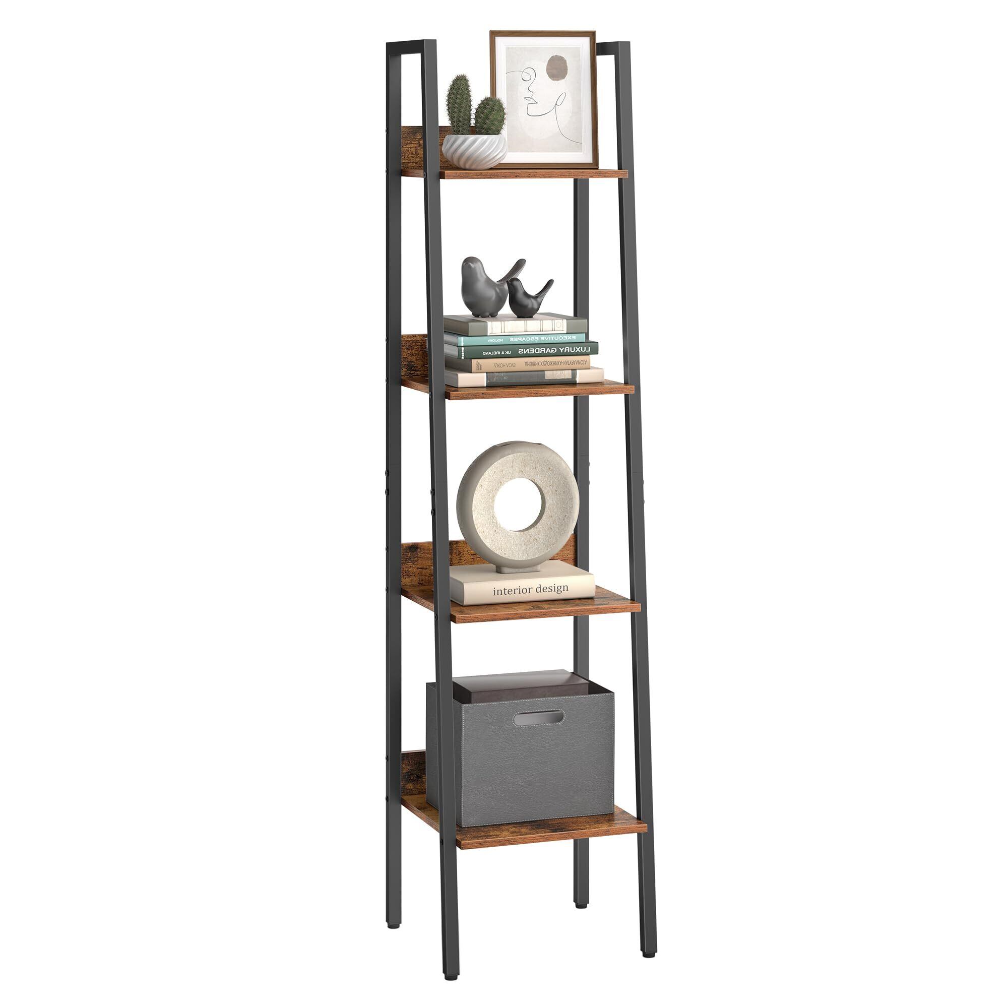 VASAGLE オープンラック 本棚 棚 ラック 4段 収納ラック オープンシェルフ スリム 収納棚 整理棚 すき間収納 シェルフ 幅33.8cm スチール脚 ヴィンテージ風 おしゃれ 組立簡単 薄型 花台 北欧 木製 ブラウン LLS108B01V2