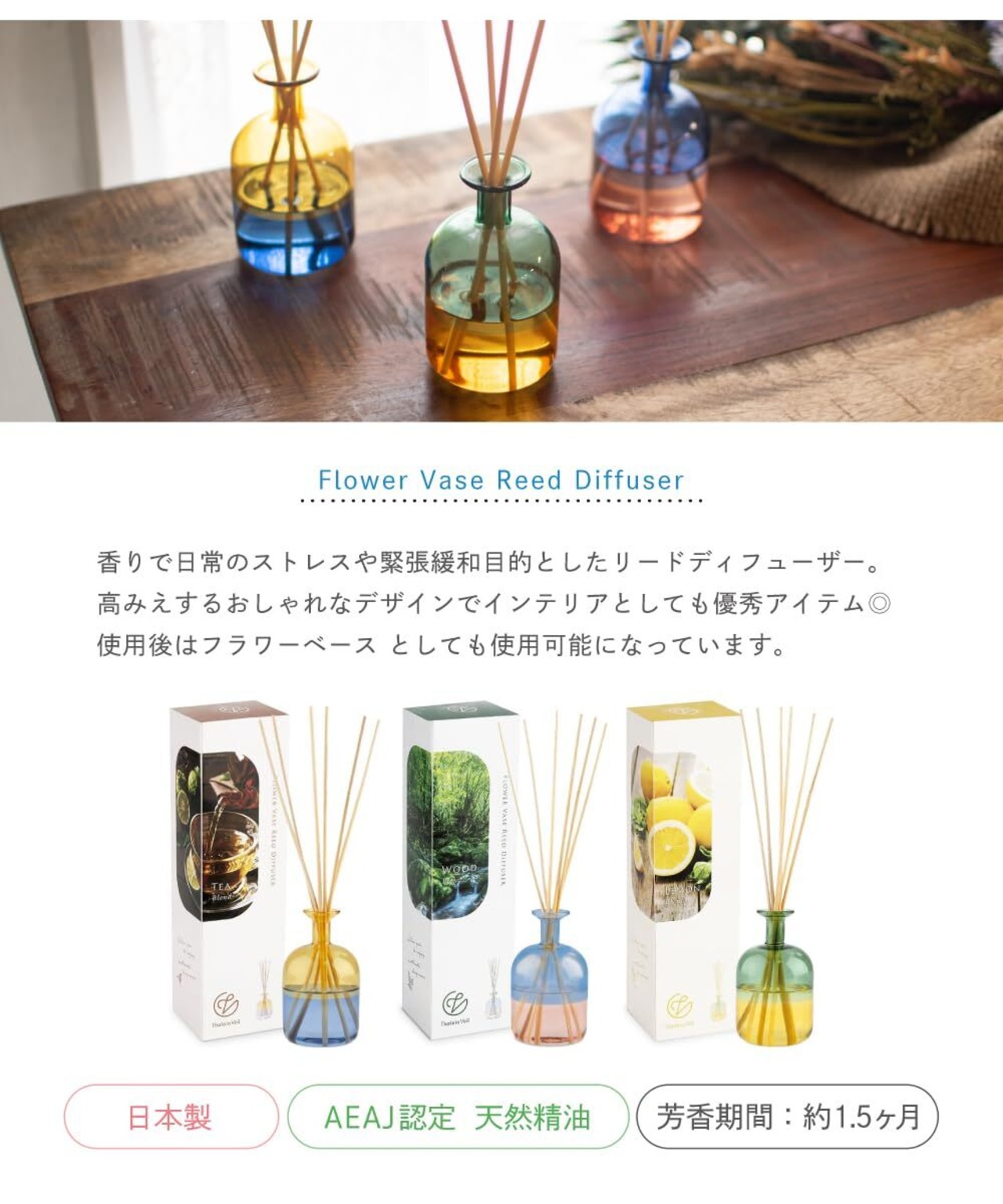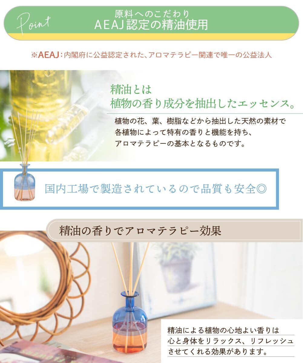 【芳香期間】約1.5ヶ月 ※使用環境により異なります。※使用本数を変更する事で使用期間が変わることがありますので予めご了承ください。