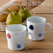自然をモチーフとしたデザインを藍色のコントラストとワンポイント赤を入れ仕上げたマグカップ。