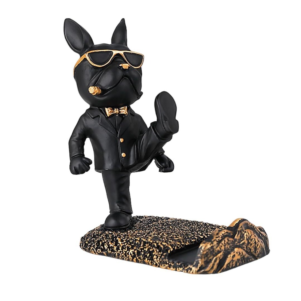 【面白いグッズ】存在感のあるシュールな置物です。立ったり蹴ったりするハンサムなブルドッグのユニークなスタイルは、前足で携帯電話を支えています。 部屋のテーブルなどインテリアにもなります。