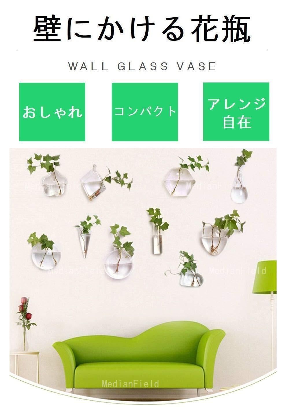 【特価商品】MedianField 【 ガラス 花瓶 3個 フック セット 】壁掛け ミニ 一輪挿し おしゃれ 多肉植物 エアプランツ アンティーク 雑貨 サボテン インテリア クリスタル 壁 ガーデニング (丸 六角 細) | ニコニコSHOP