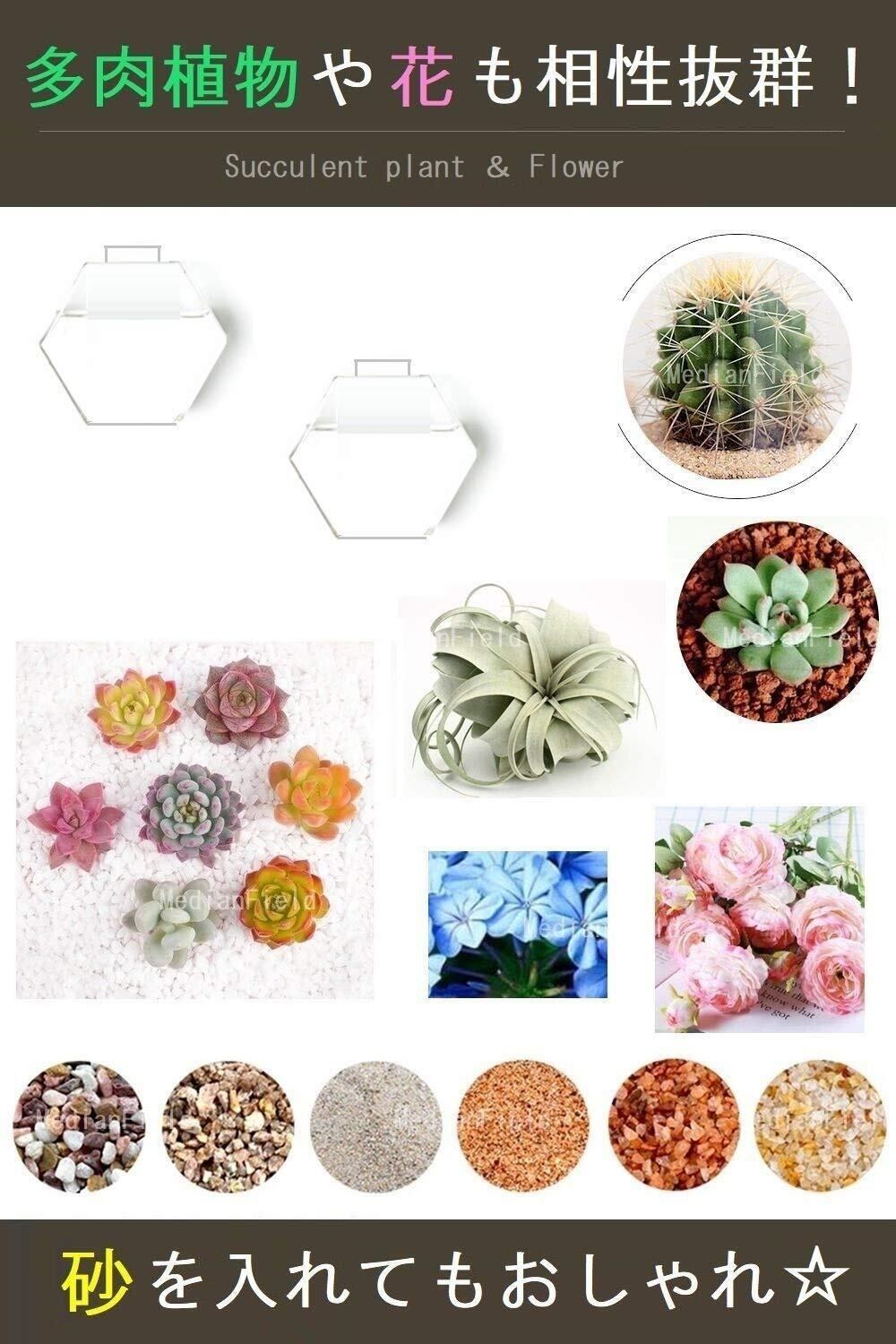 水を入れて植物を育てることもできますし、砂を入れたり、造花やエアープランツを入れても素敵です。シンプルなので、アレンジ自在にできるのが魅力です。