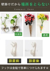 おしゃれな壁掛け 花瓶 3個 フックセット です。※画像の植物は付属しておりません。花瓶とフックのみとなっております。